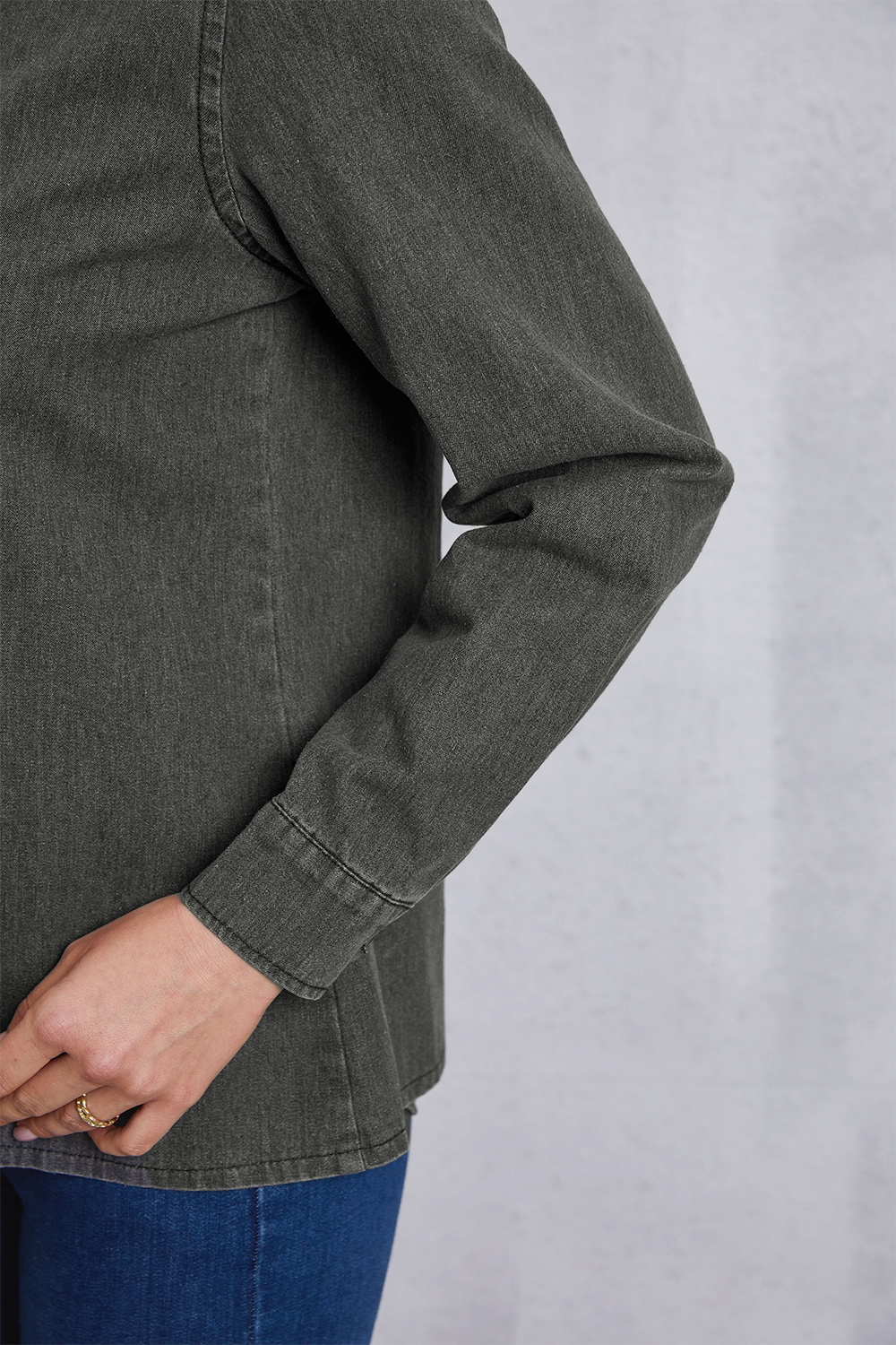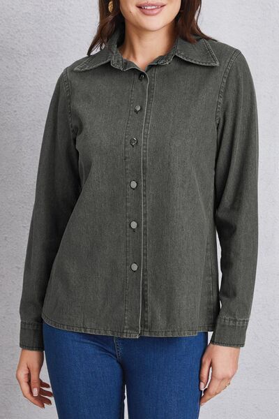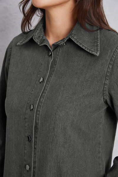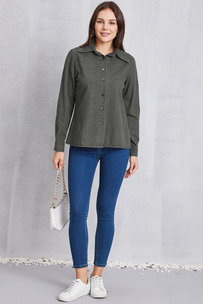 Collared Neck Button Up Denim Top