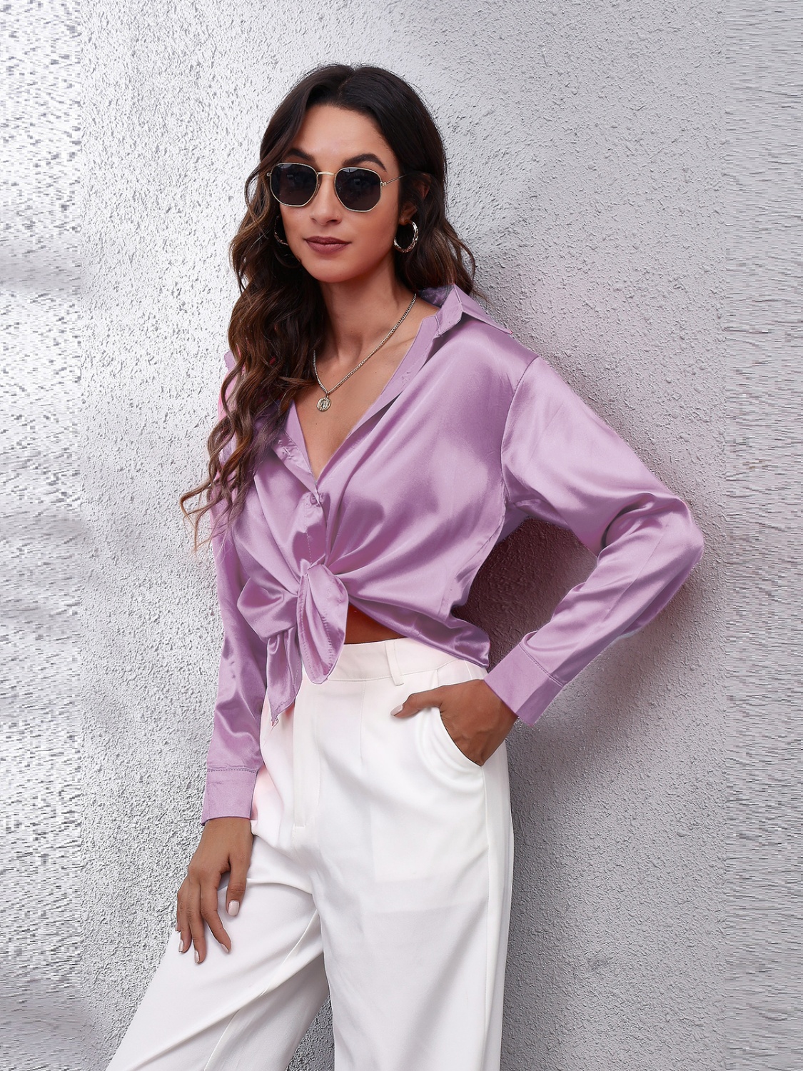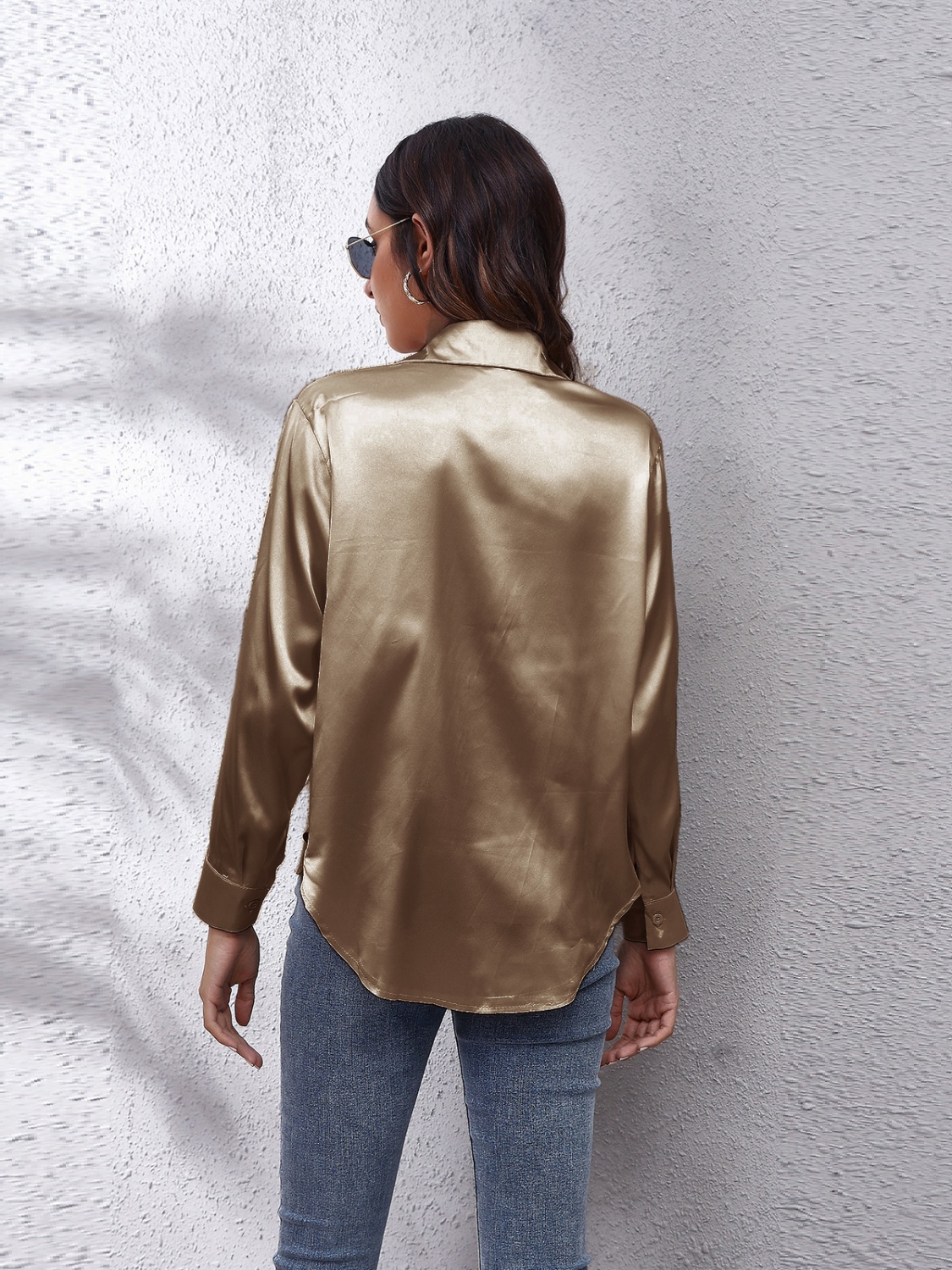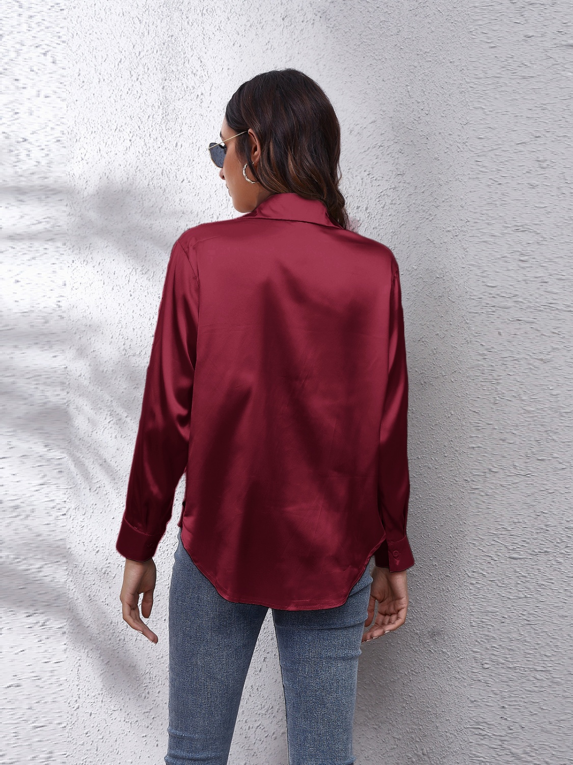 Collared Neck Buttoned Long Sleeve Shirt