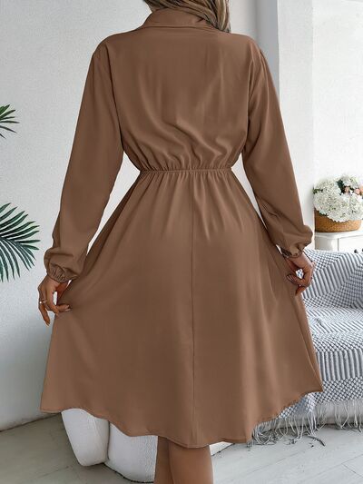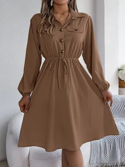 Collared Neck Long Sleeve Dress with Pockets