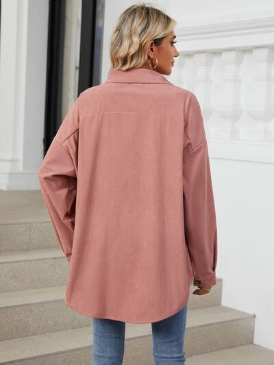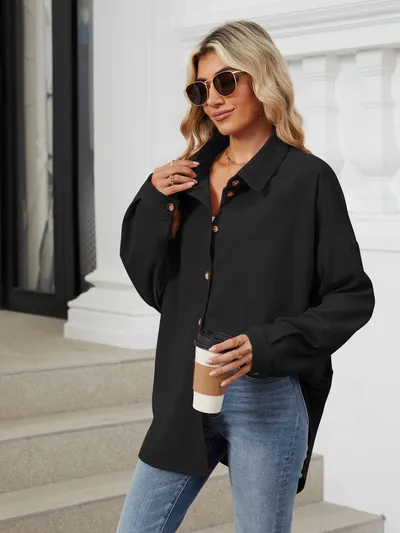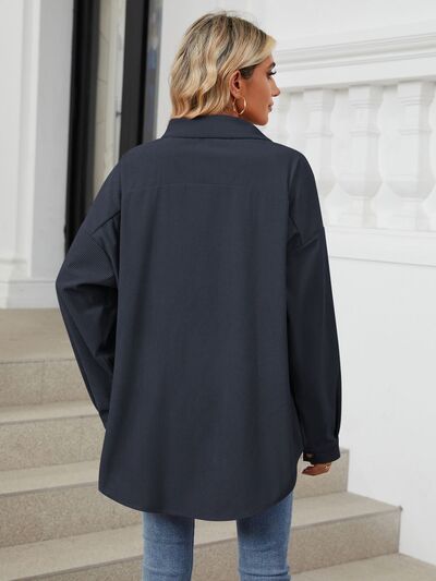 Collared Neck Long Sleeve Dropped Shoulder Shirt