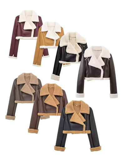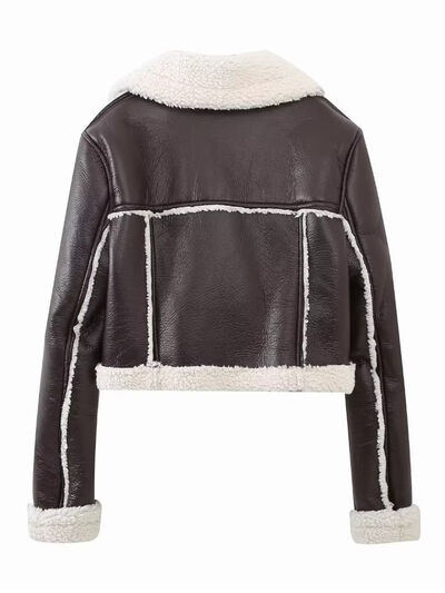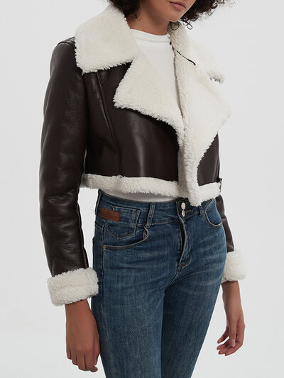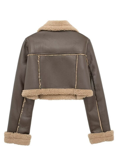 Collared Neck Long Sleeve Plush Cropped Jacket