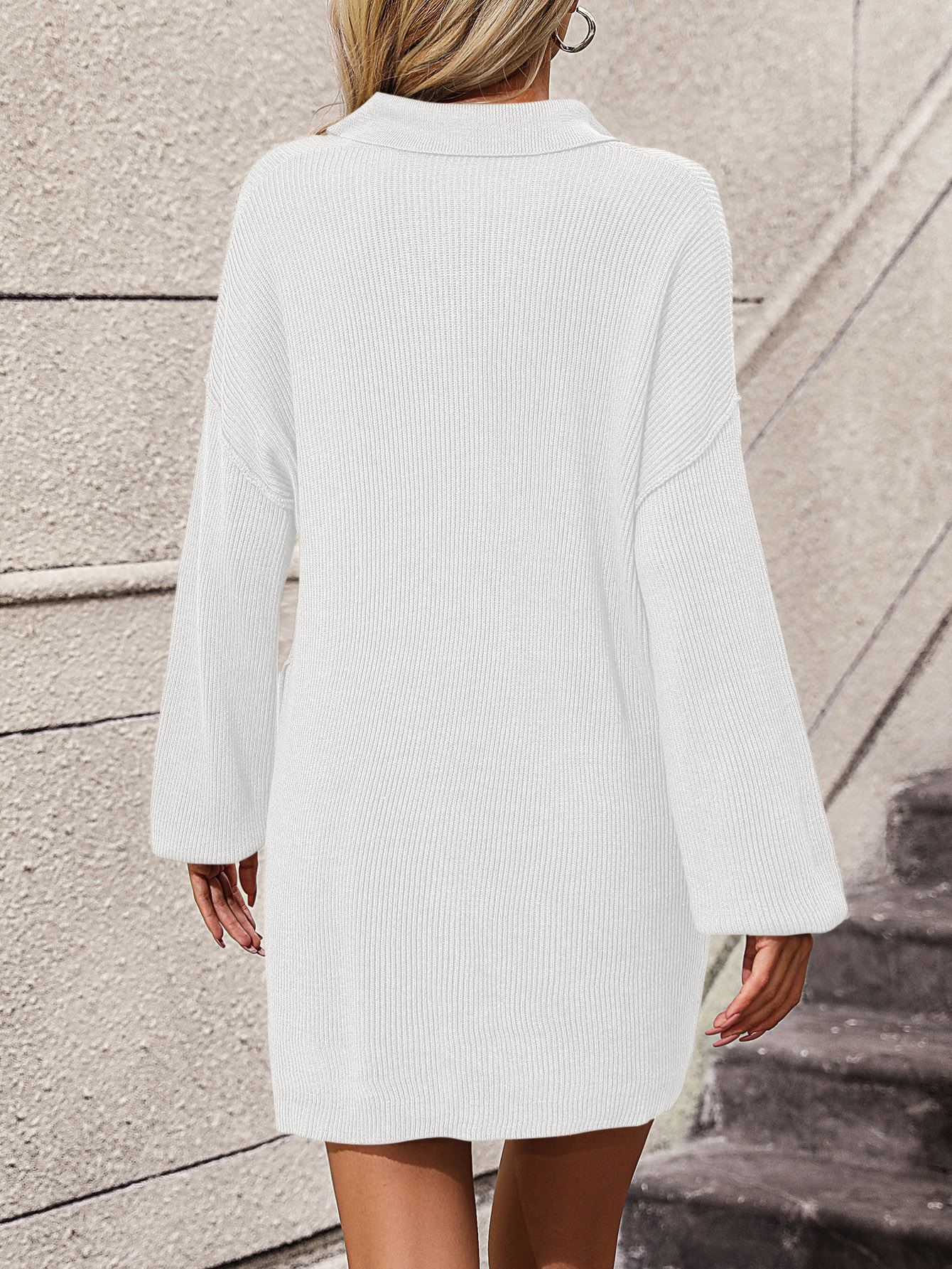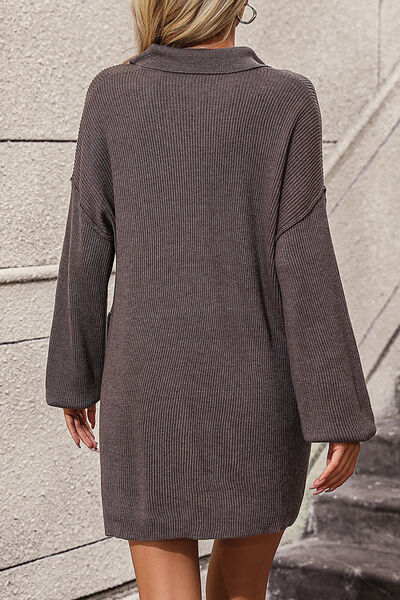 Collared Neck Long Sleeve Sweater Dress with Pockets
