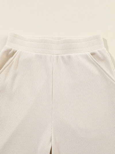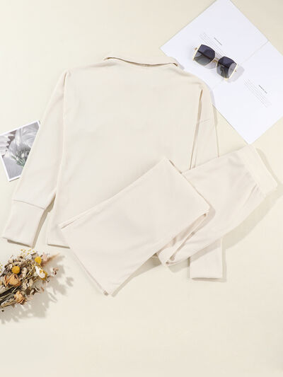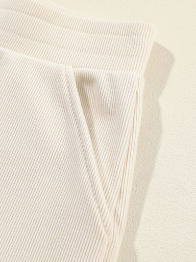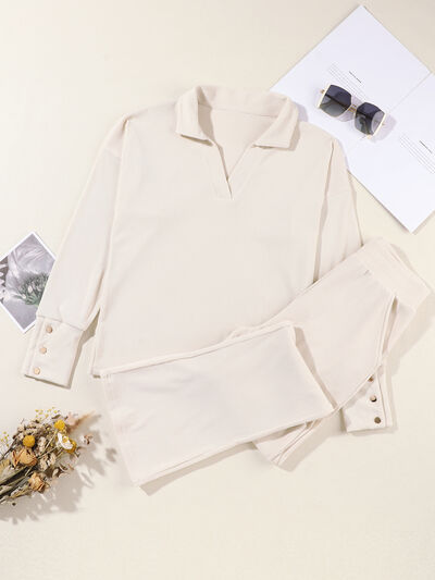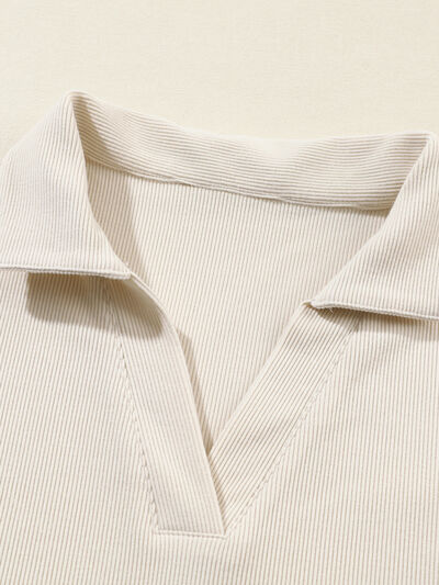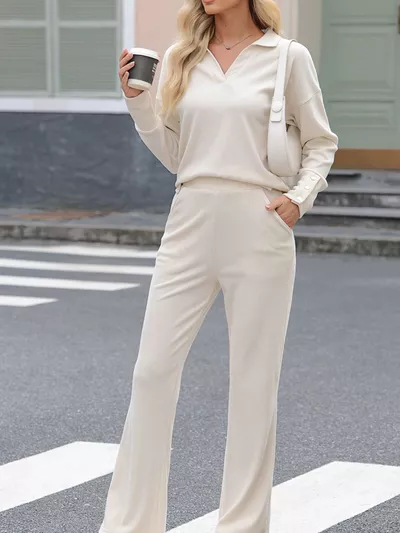 Collared Split Neck Ribbed 2pcs Outfit Set