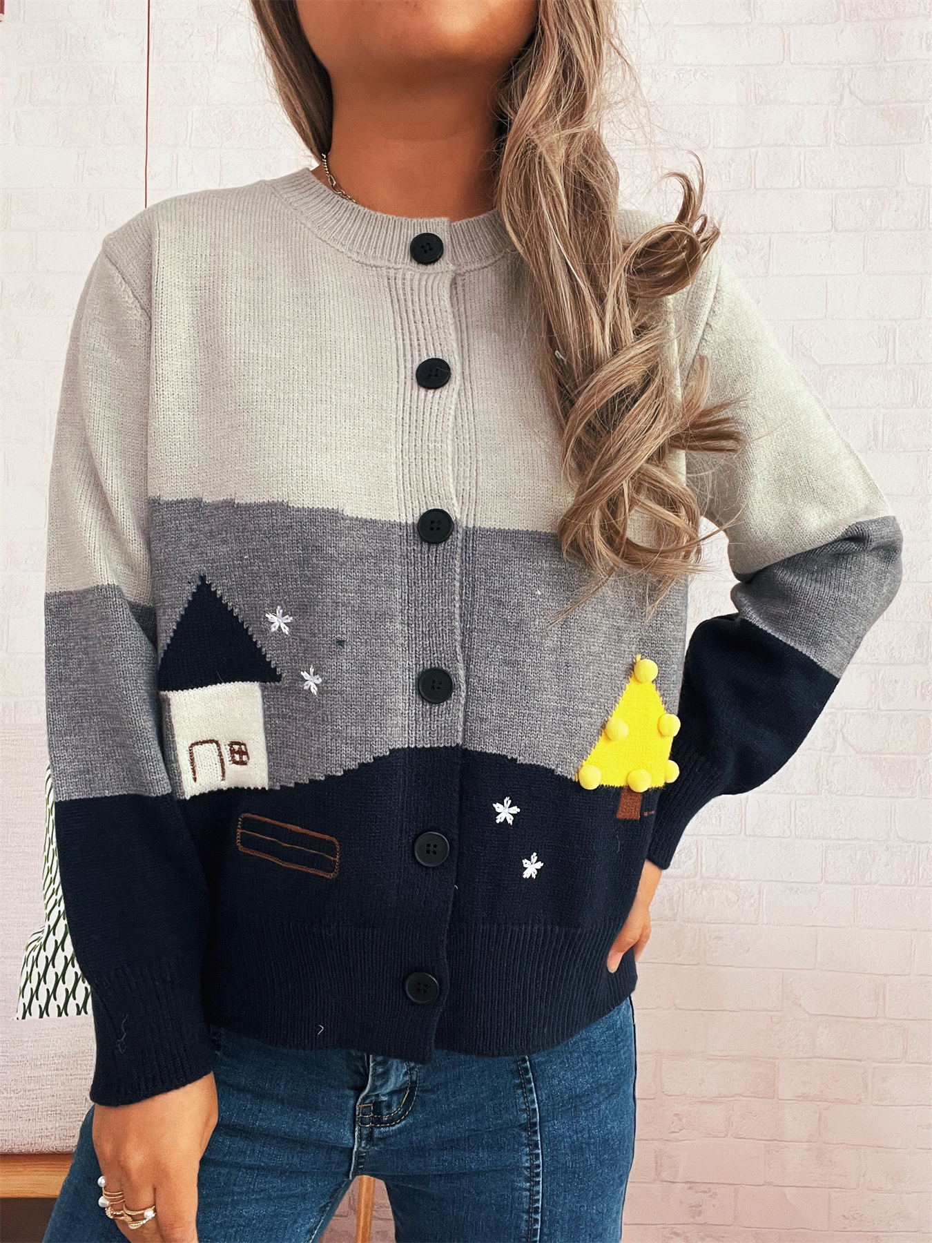 Color Block Button-Up Cardigan