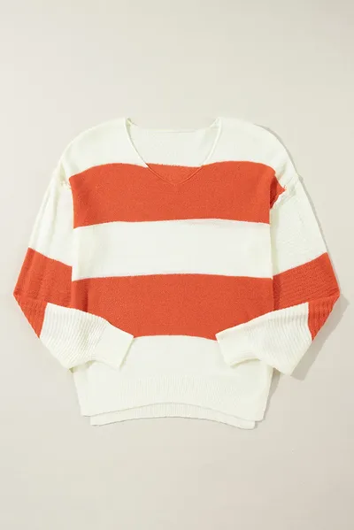 Color Block Dropped Shoulder V-Neck Sweater