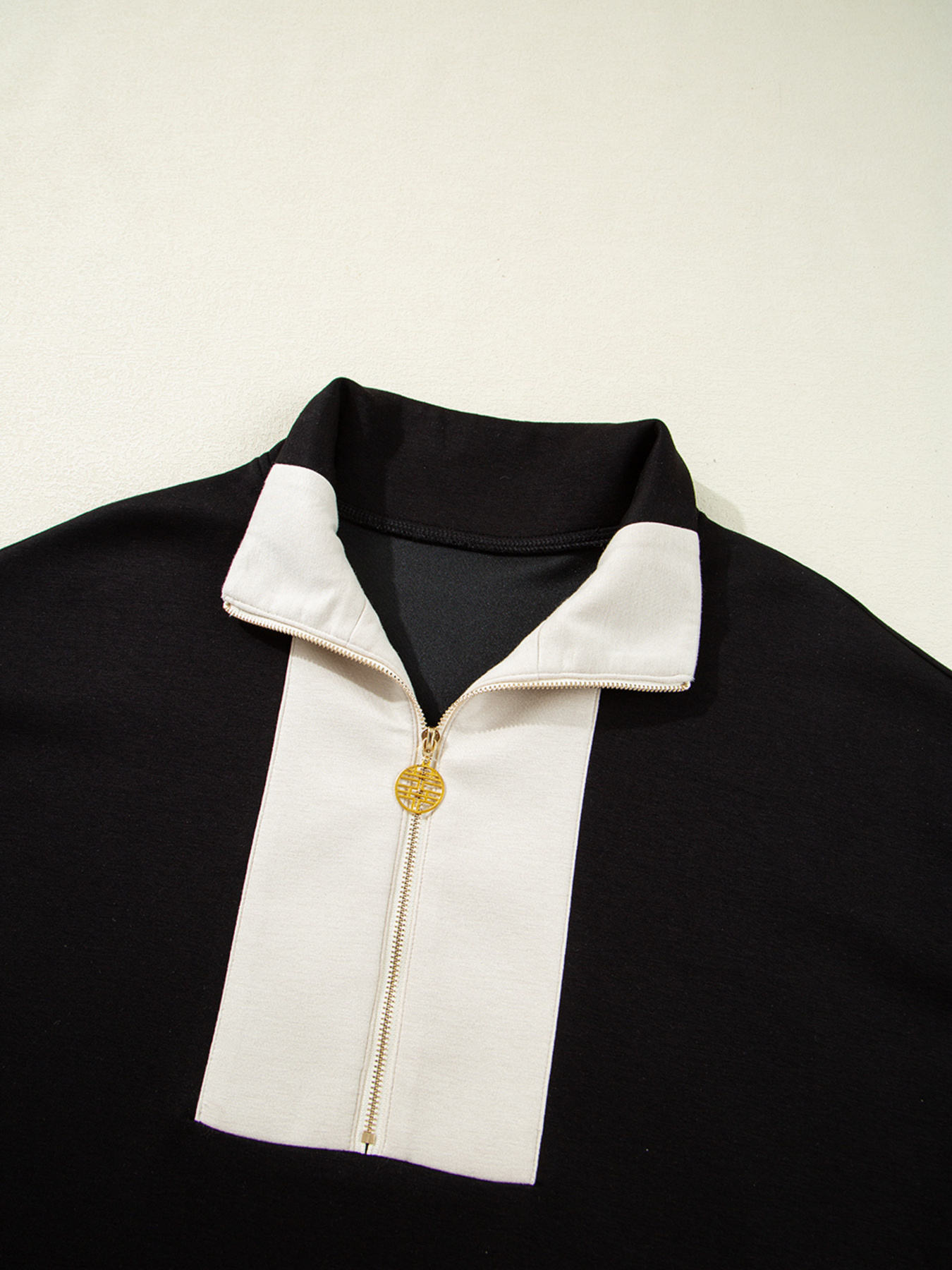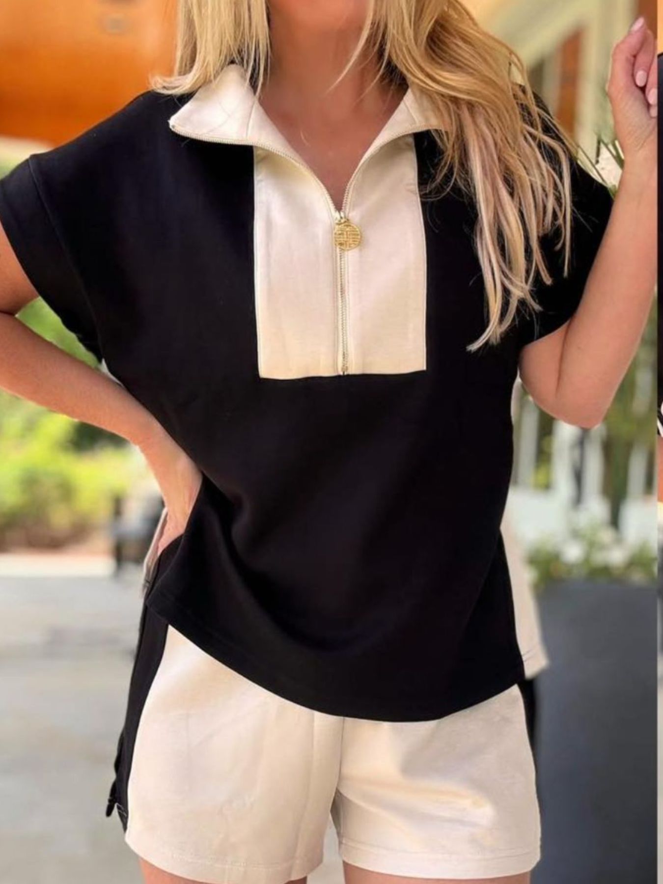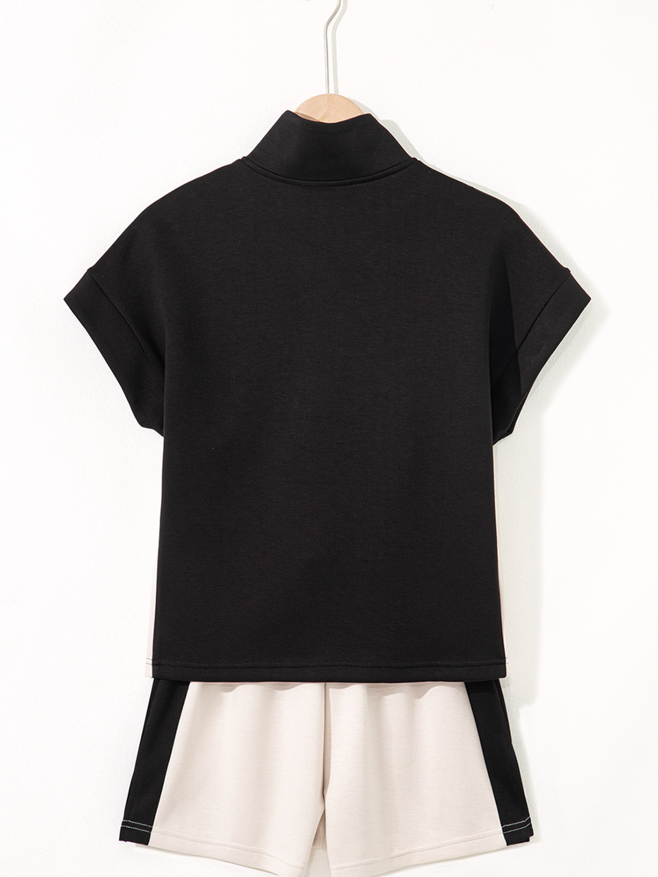 Color Block Half Zip Top and Shorts Two-Piece Set