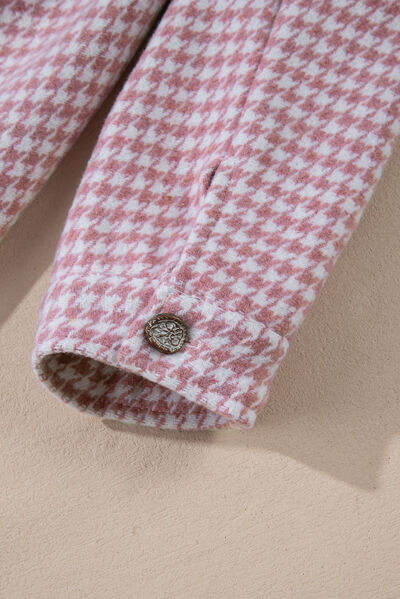 Color Block Houndstooth Collared Neck Shacket