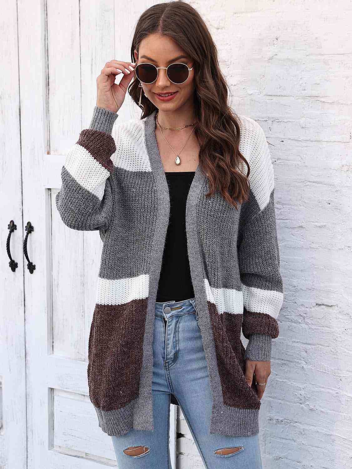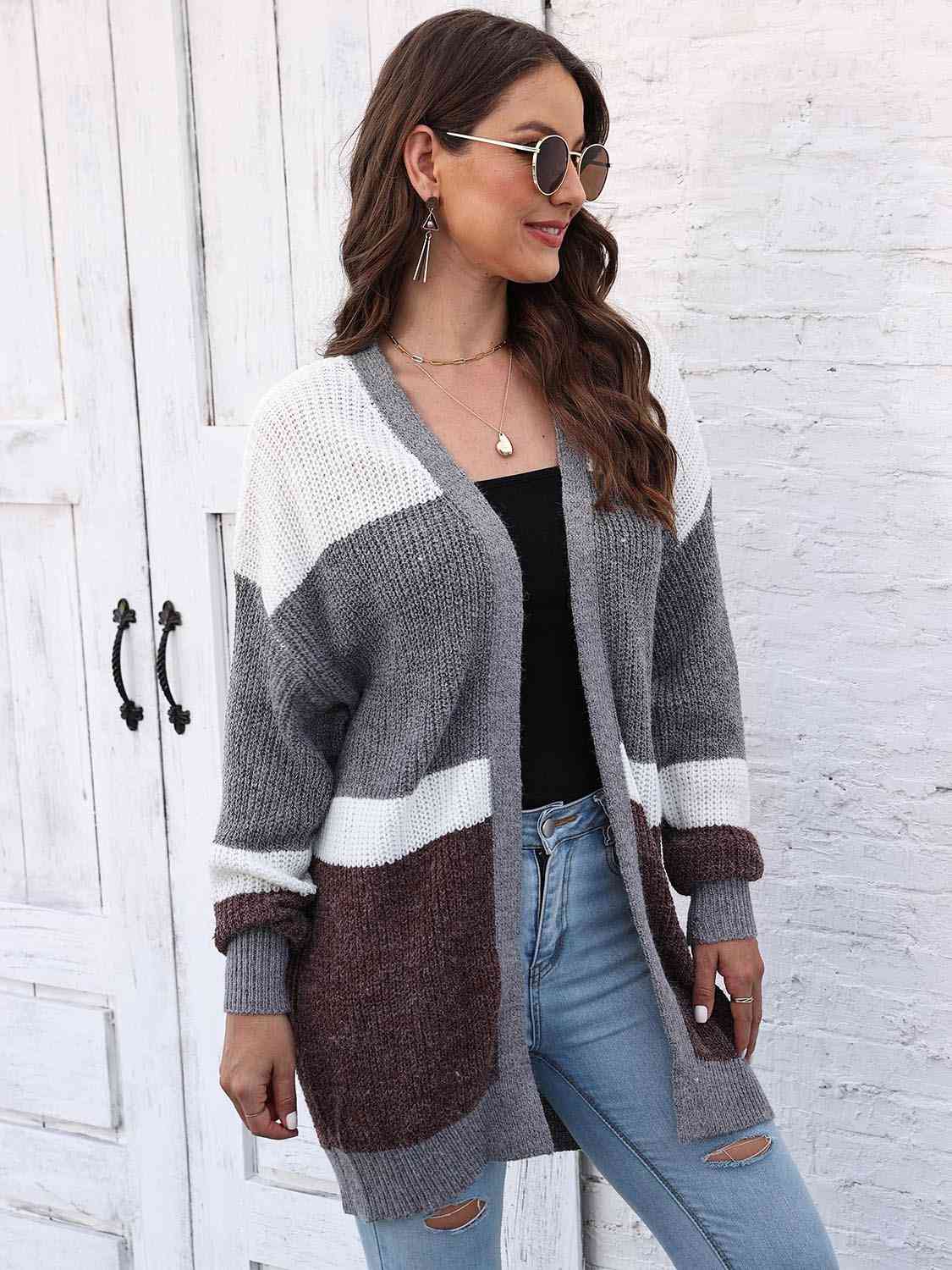Color Block Open Front Cardigan