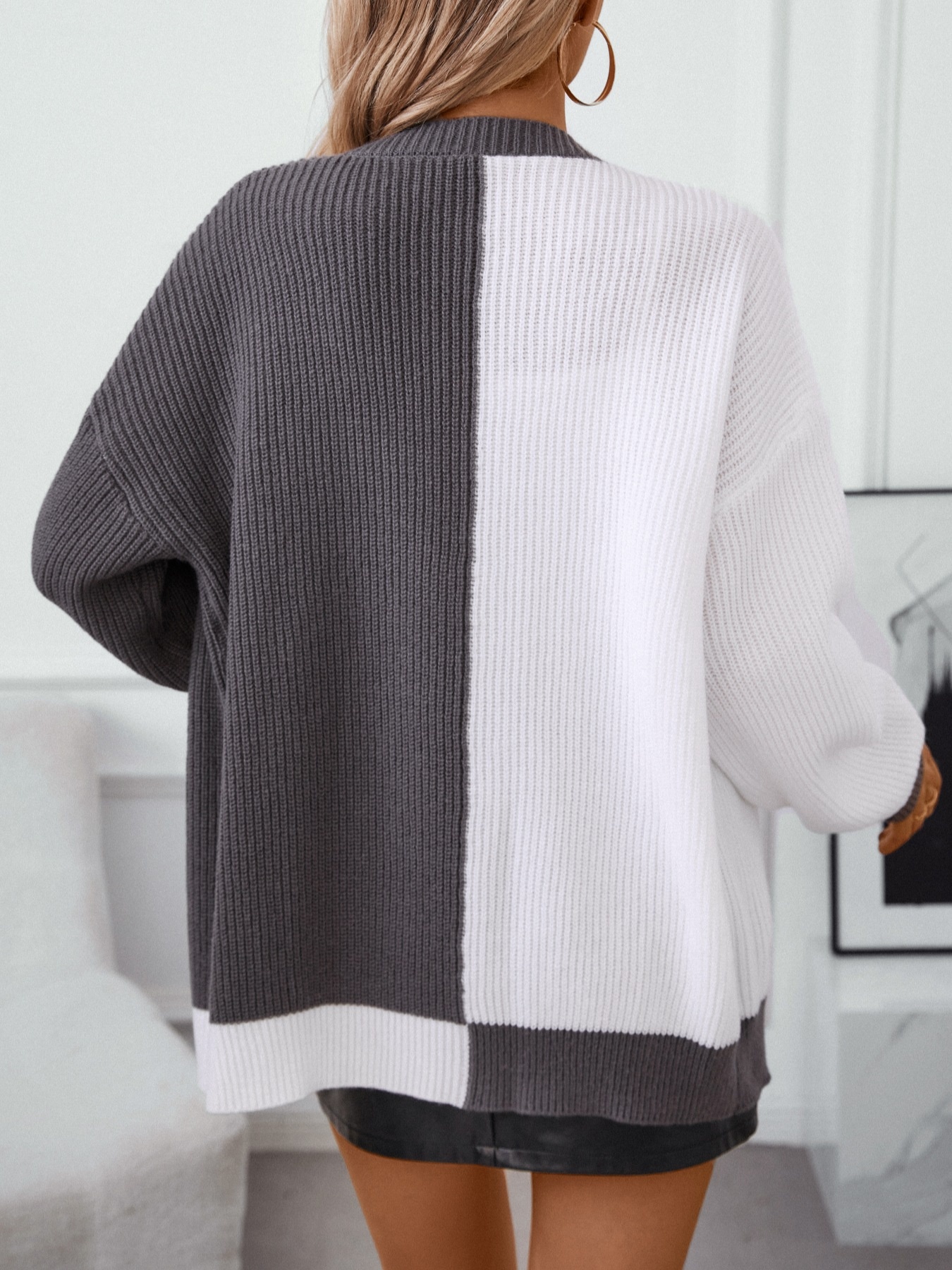 Color Block Open Front Knit Cardigan