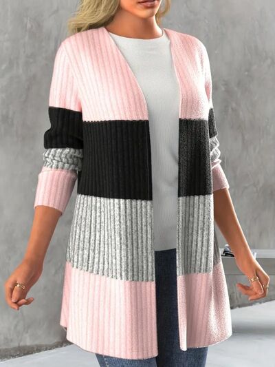 Color Block Open Front Long Sleeve Cardigan