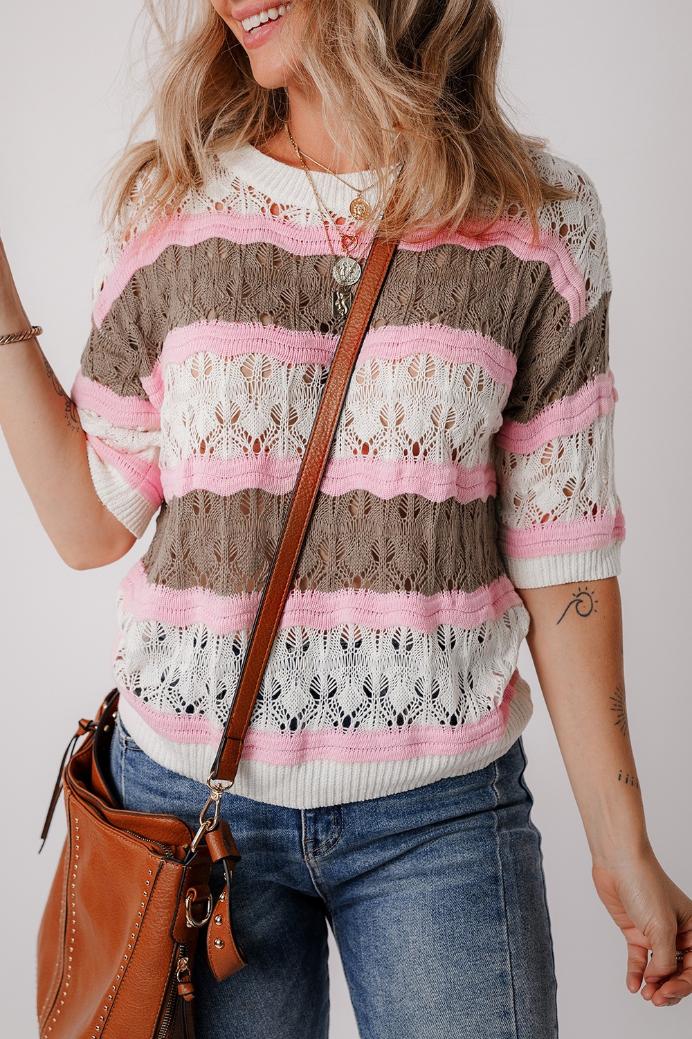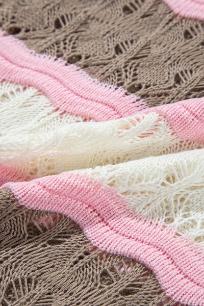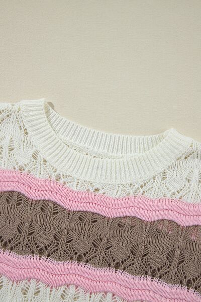 Color Block Openwork Half Sleeve Sweater