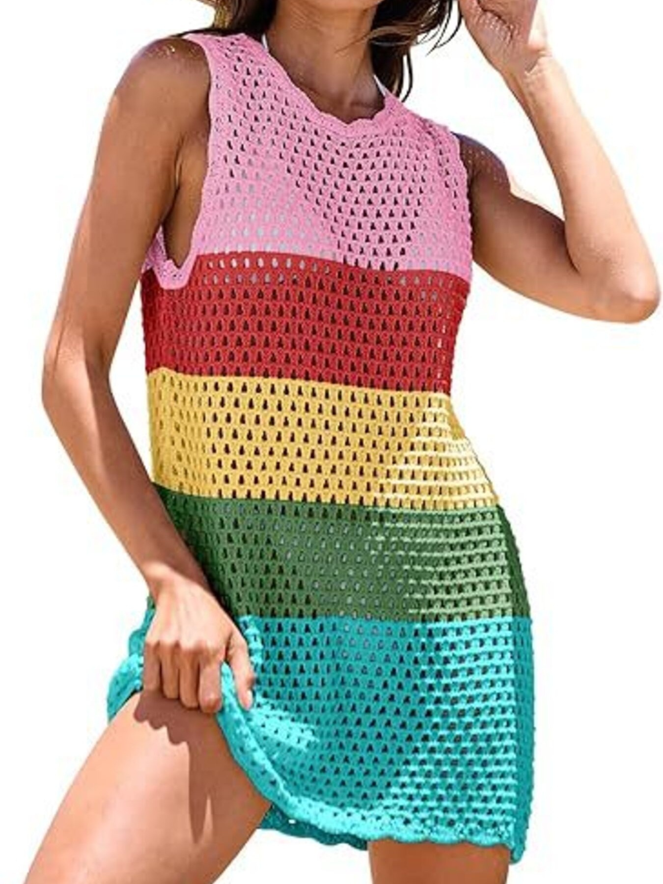 Color Block Openwork Sleeveless Cutout Back Cover-Up
