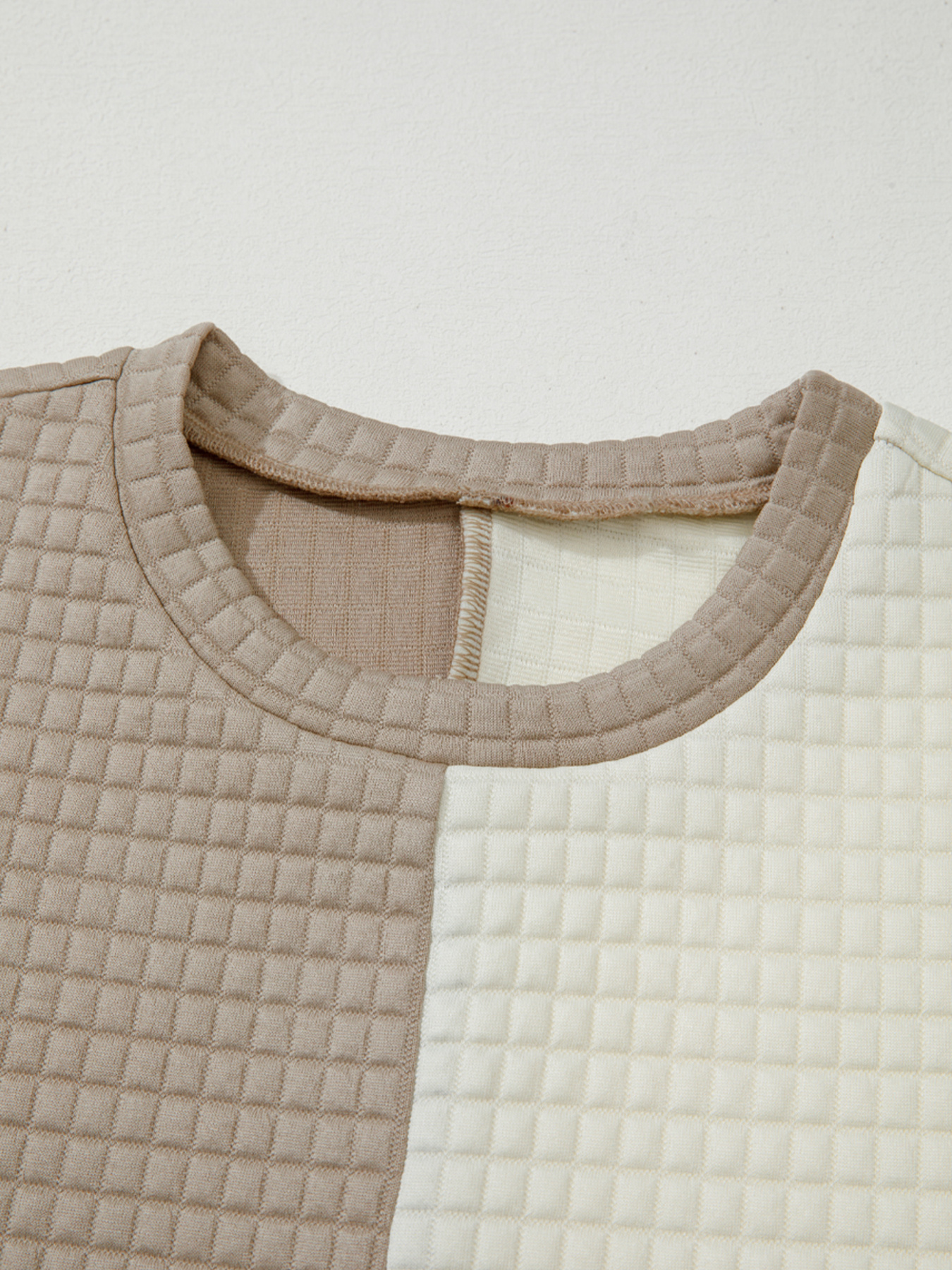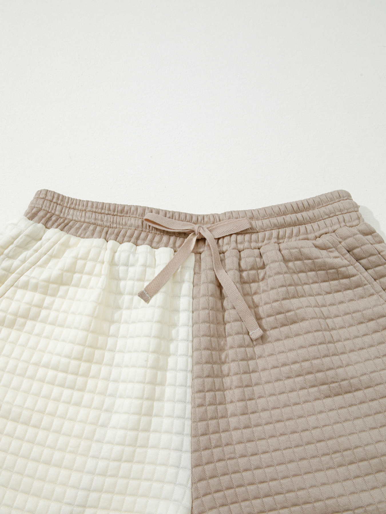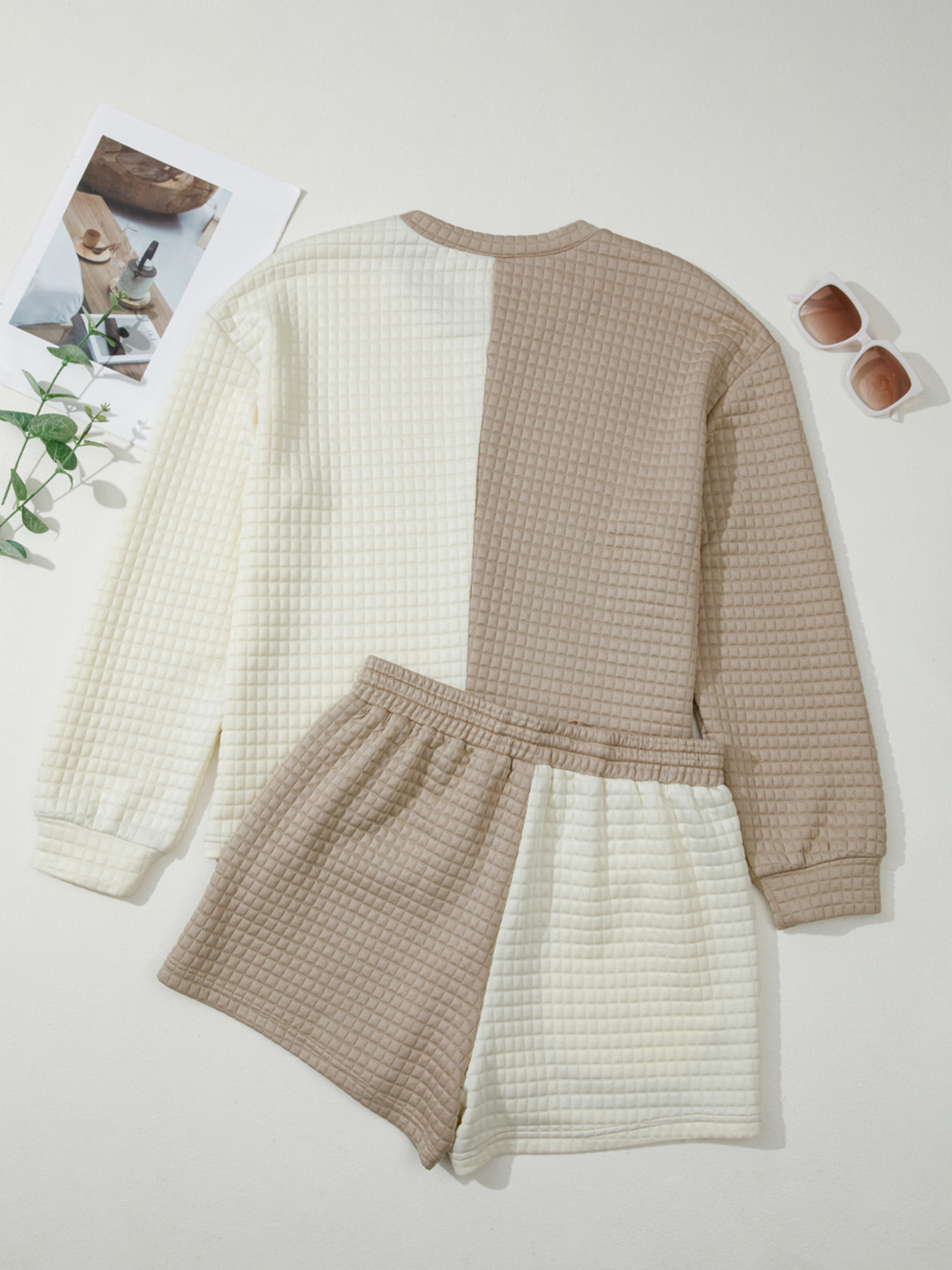 Color Block Patchwork Textured Long Sleeve Top and Short Lounge Set