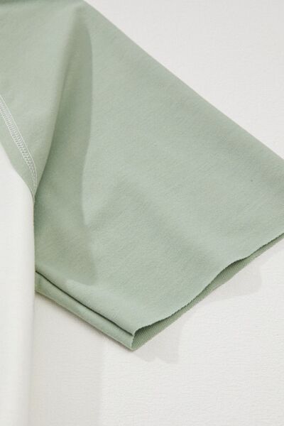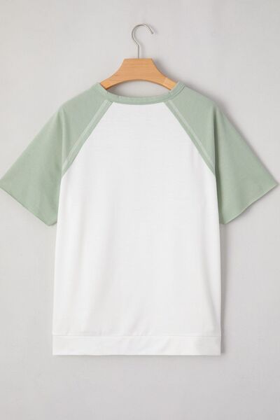 Color Block Raglan Short Sleeve Half Buttons High Low T Shirt