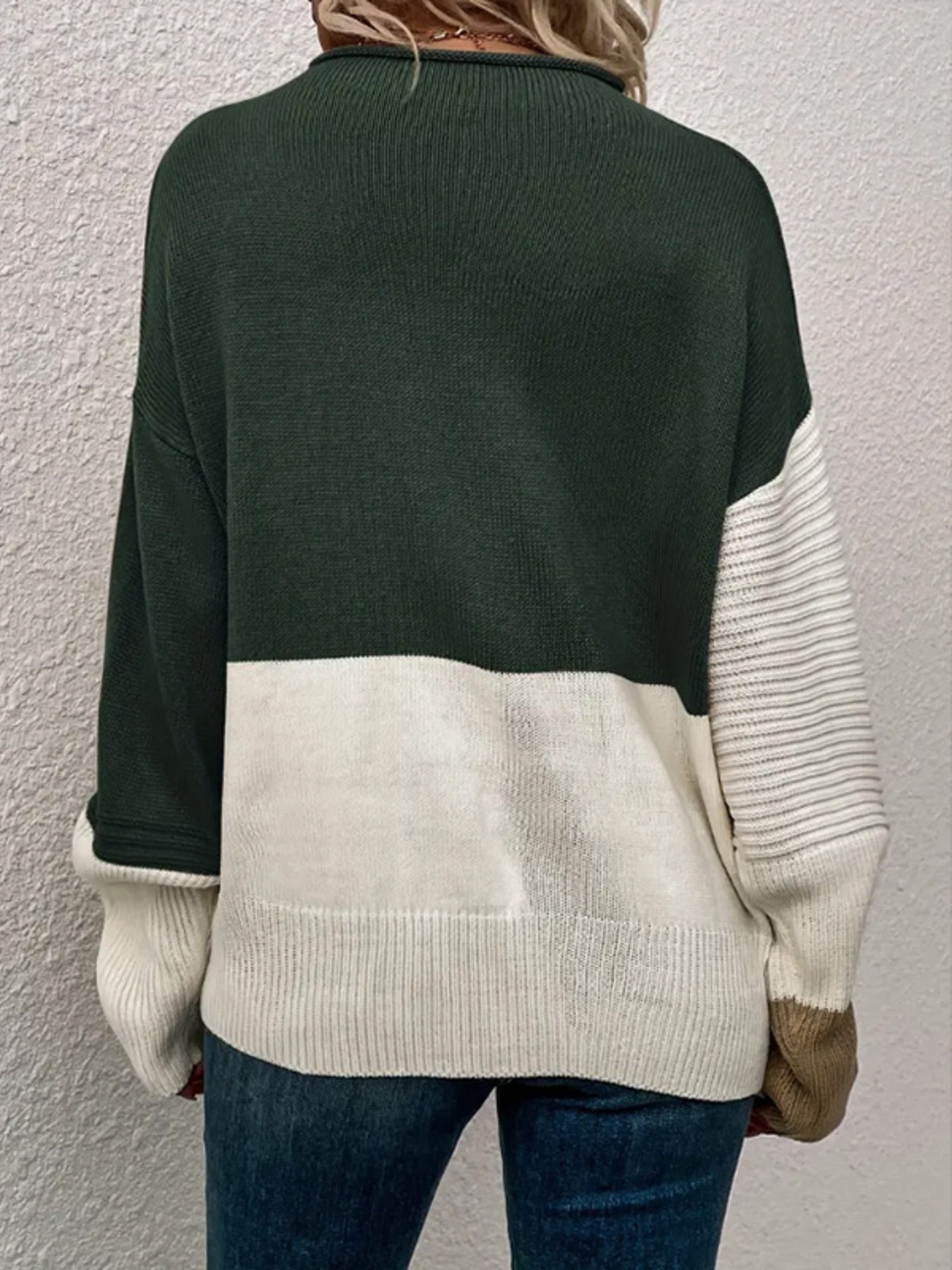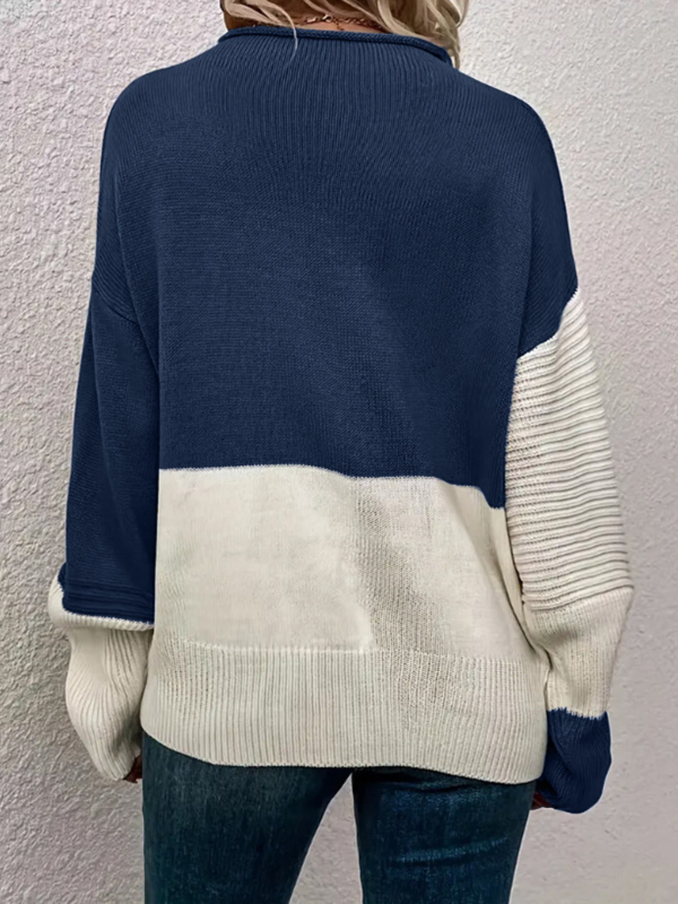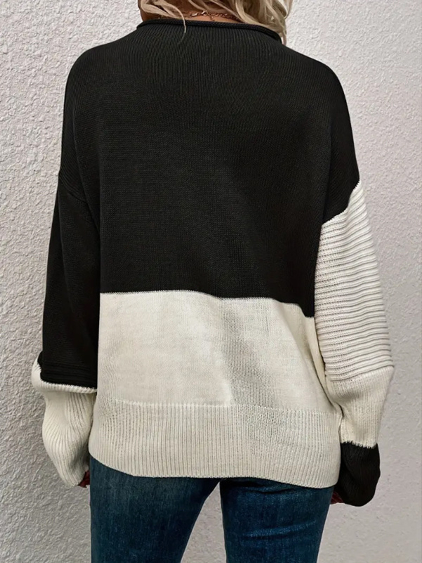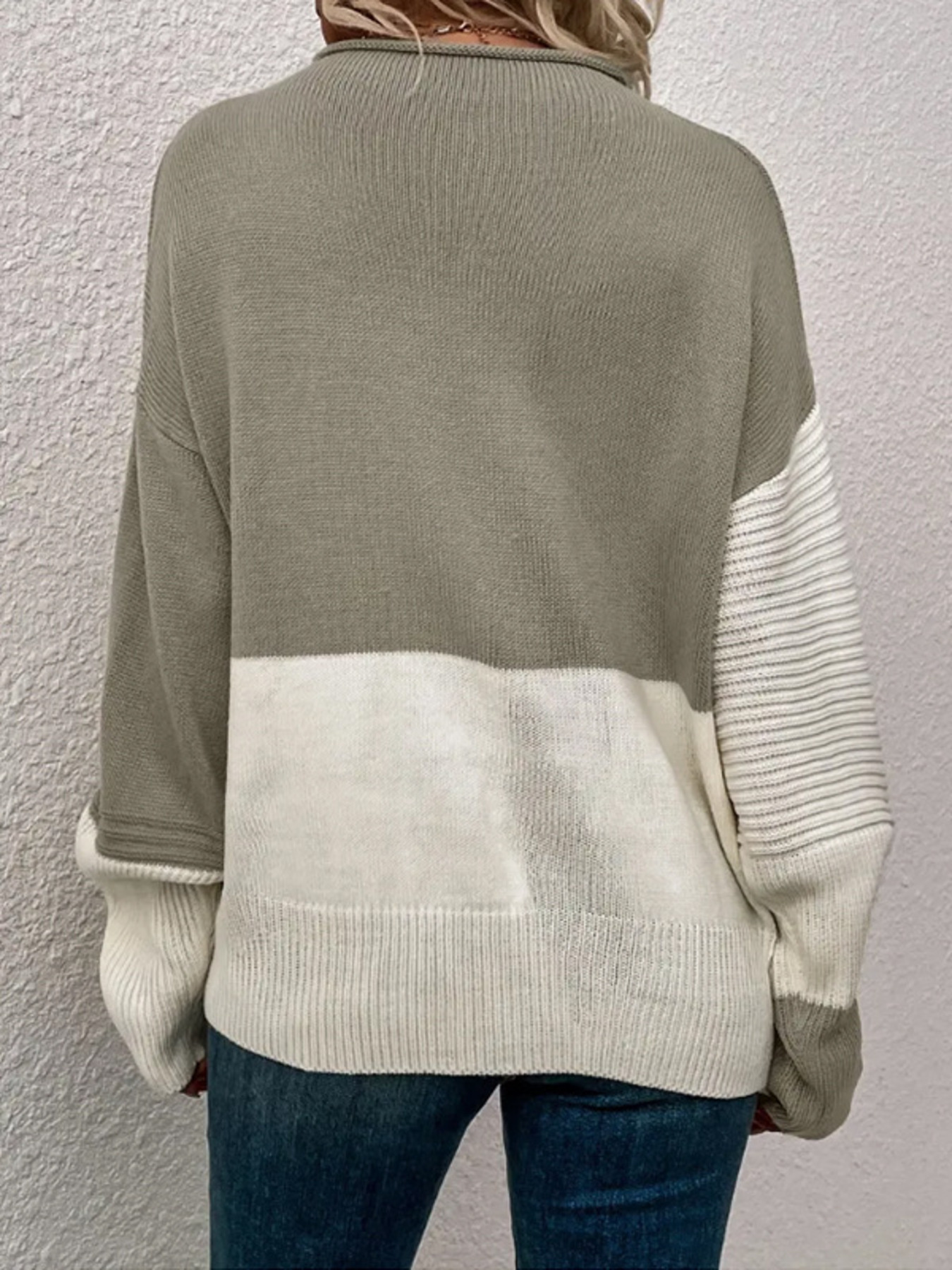 Color Block Ribbed Knit Sweater