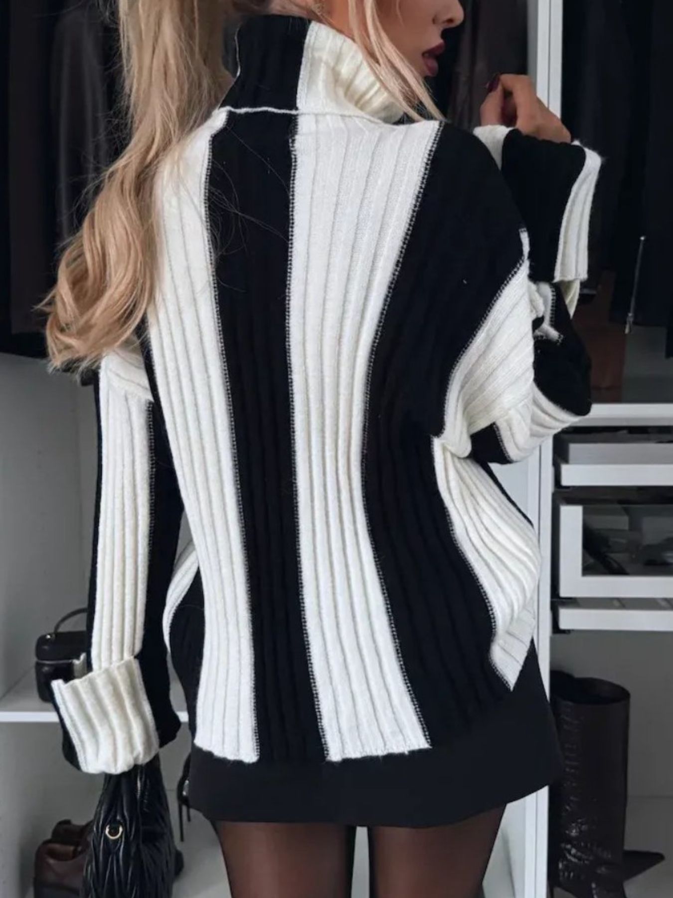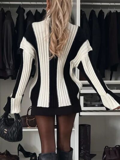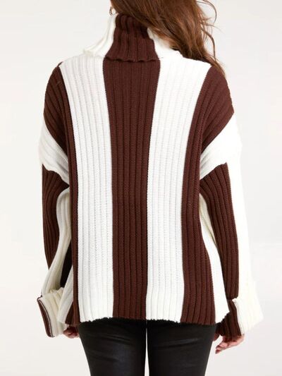 Color Block Ribbed Turtleneck Sweater