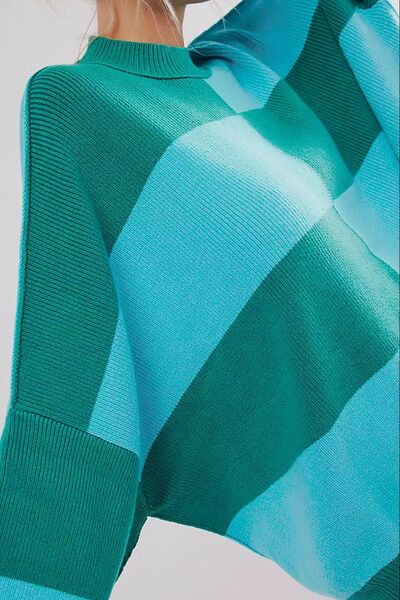 Color Block Round Neck Long Sleeve Sweater