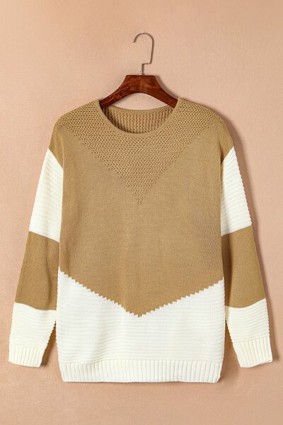 Color Block Round Neck Long Sleeve Sweater