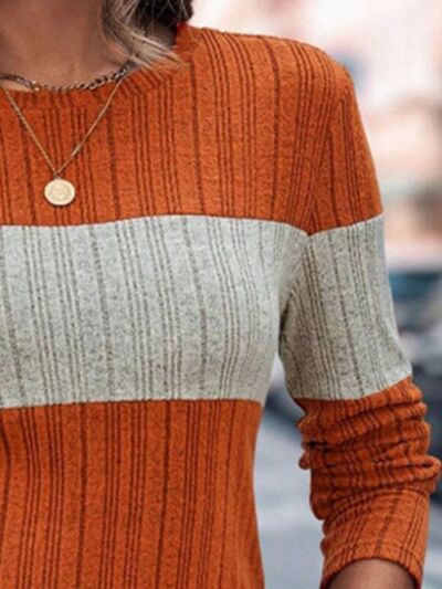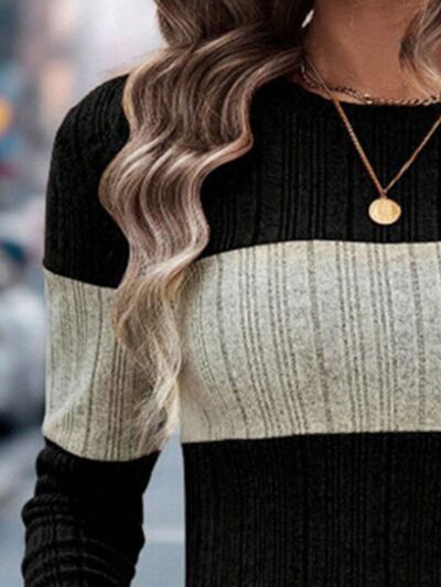 Color Block Round Neck Long Sleeve Sweater
