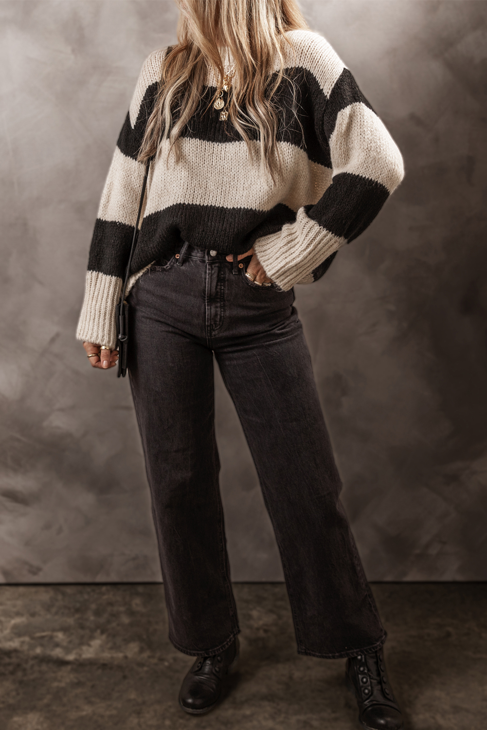 Color Block Round Neck Sweater
