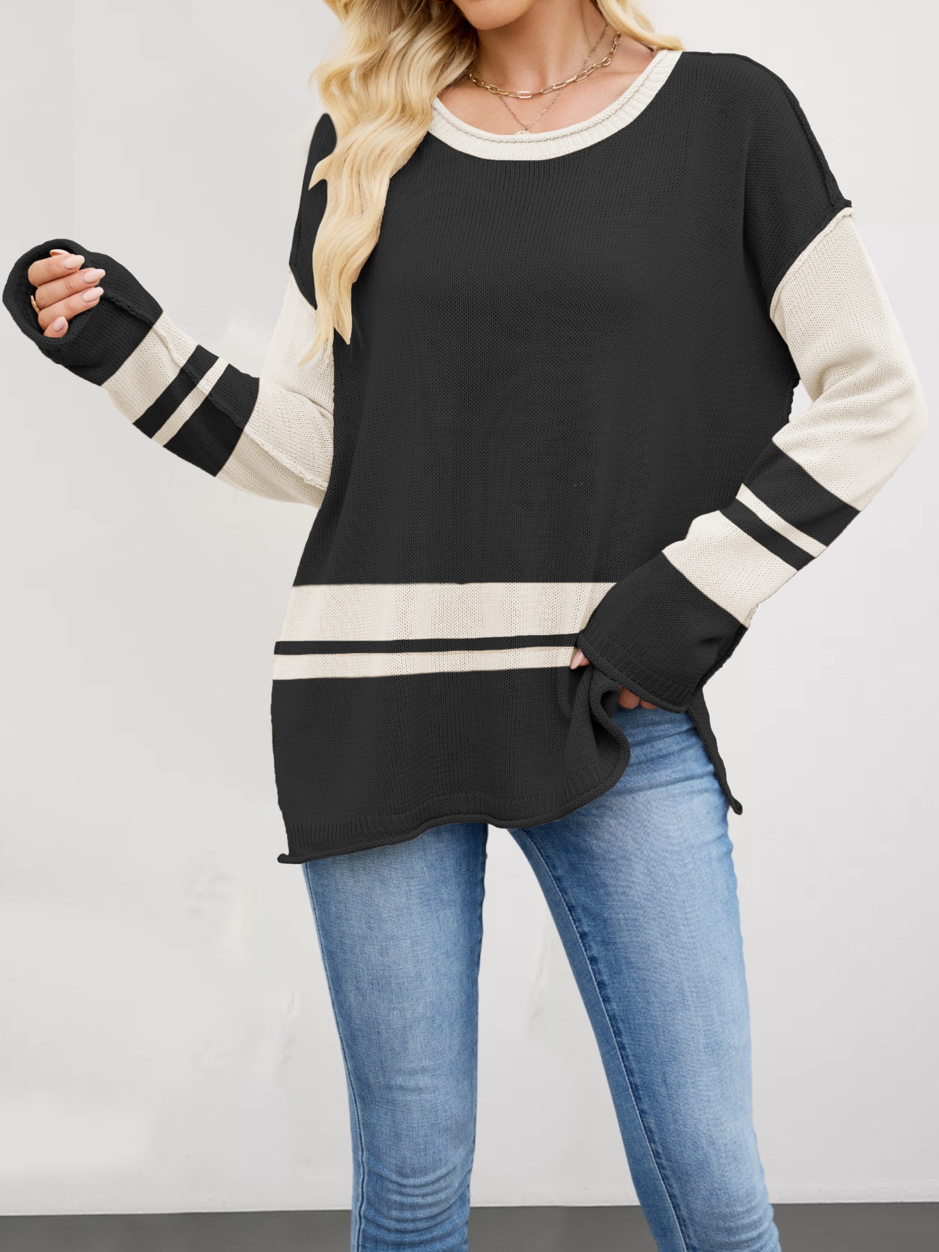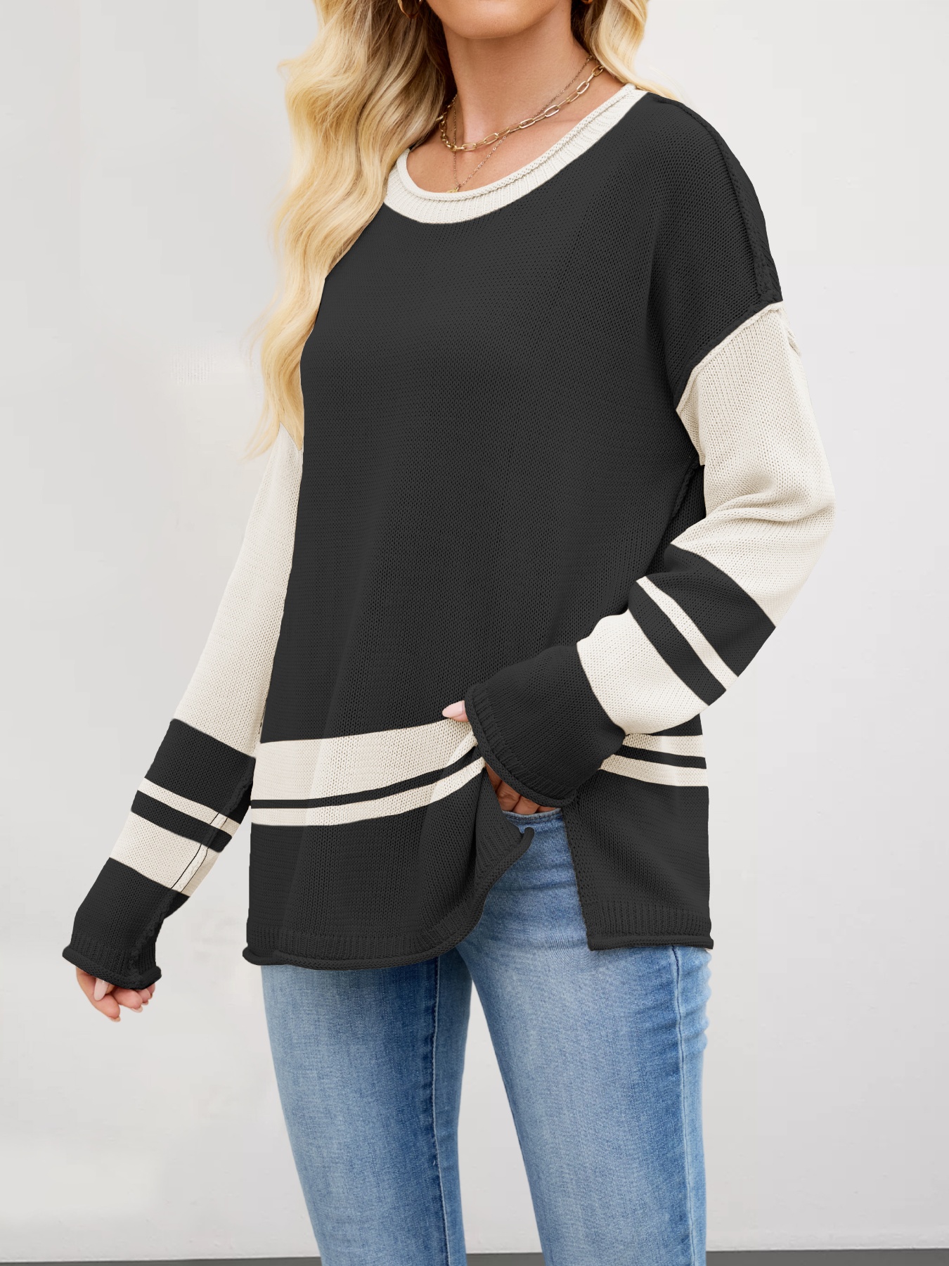 Color Block Side Slit Sweater