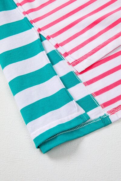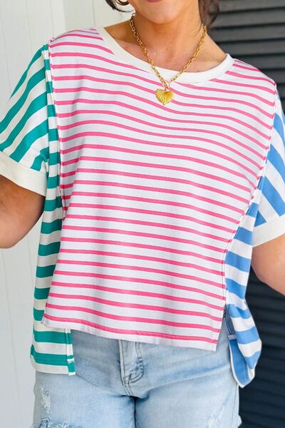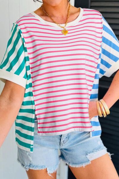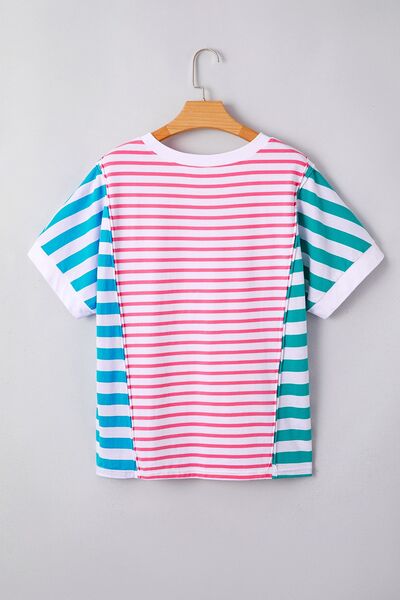 Color Block Striped Batwing Sleeve T-Shirt