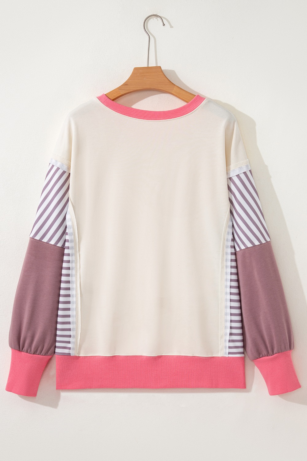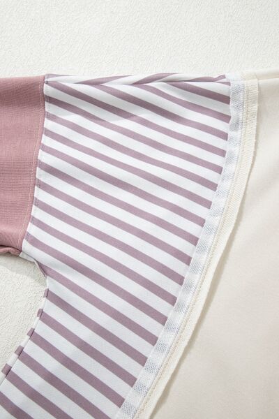 Color Block Striped Patchwork Dolman Slit Sweatshirt