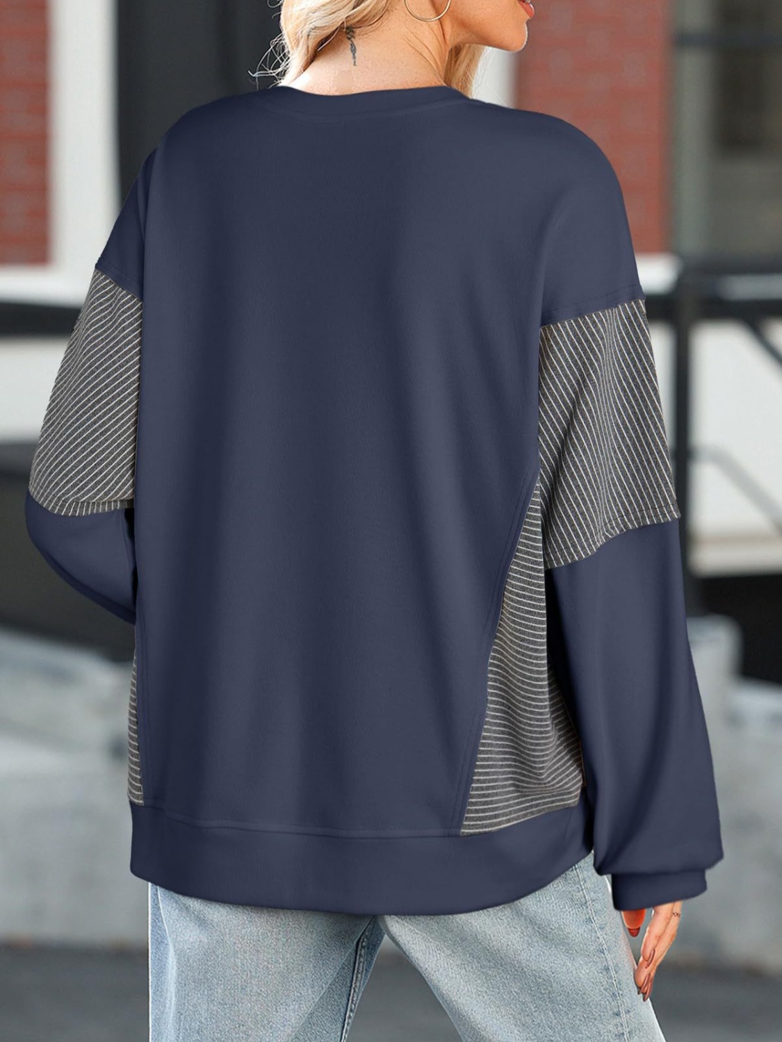 Color Block Striped Sleeve Casual Sweatshirt