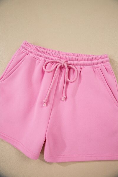 Color Block Sweatshirt and Elastic Waist Shorts Set