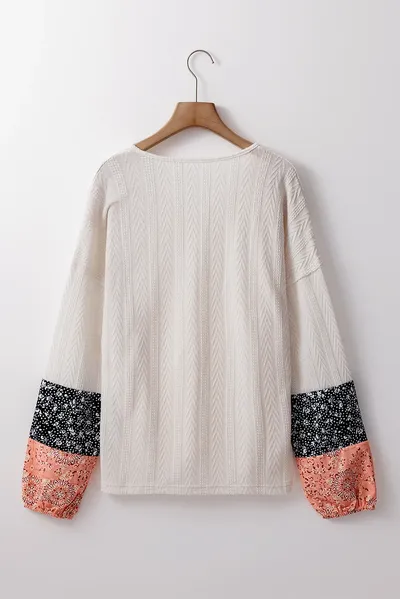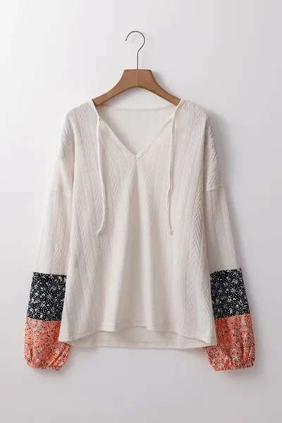 Color Block Tie Neck Long Sleeve Top