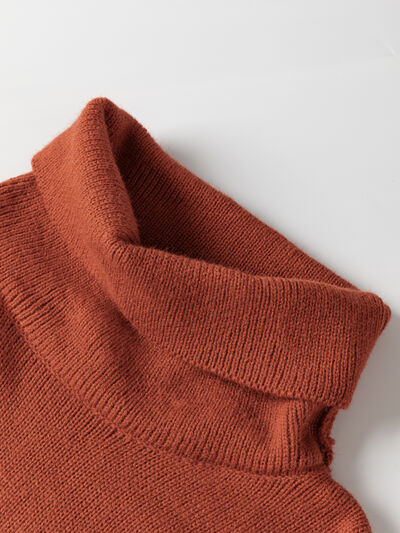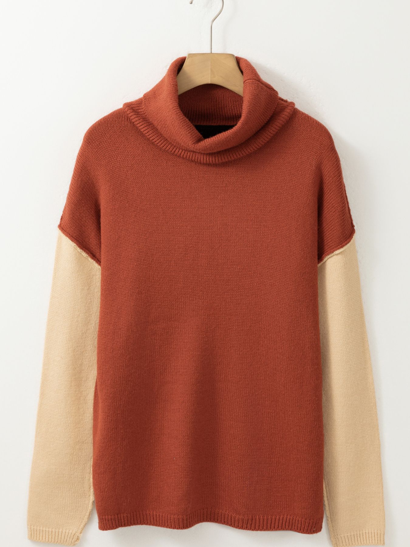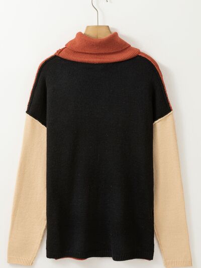 Color Block Turtleneck Drop Shoulder Knit Sweater