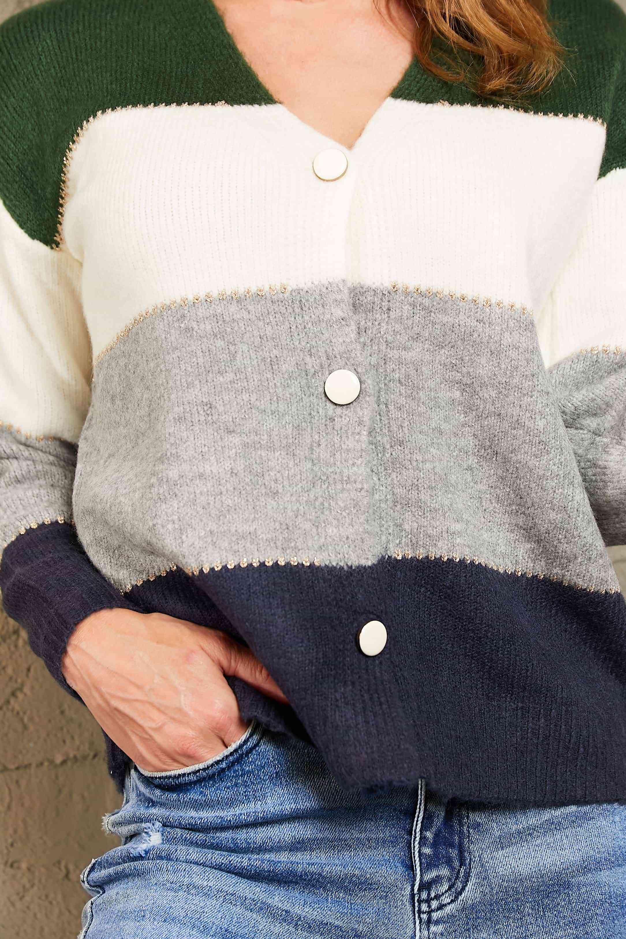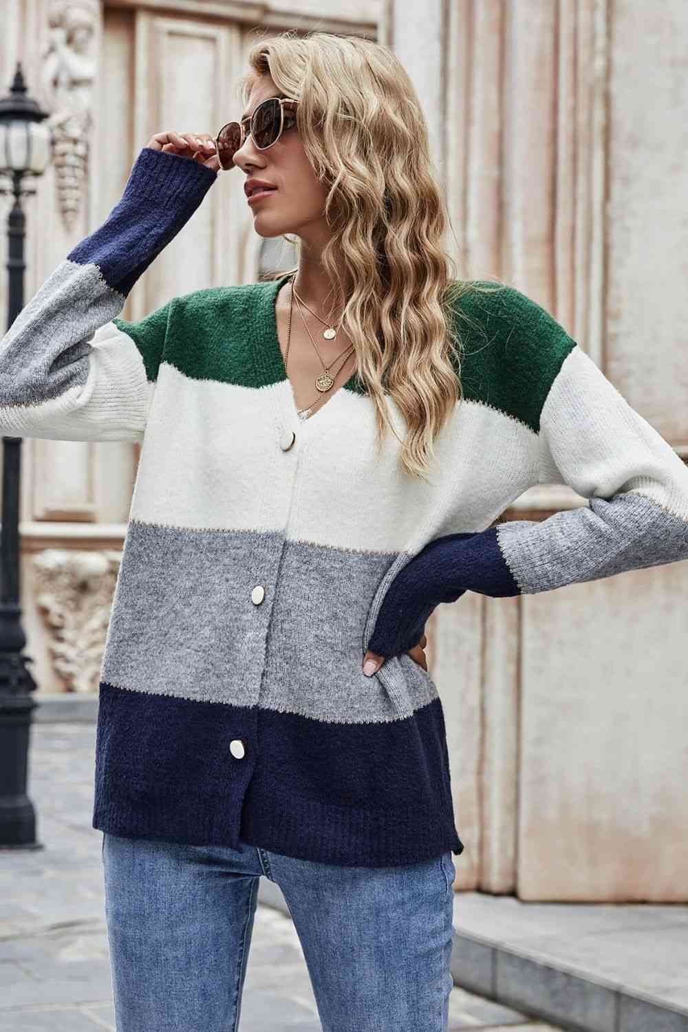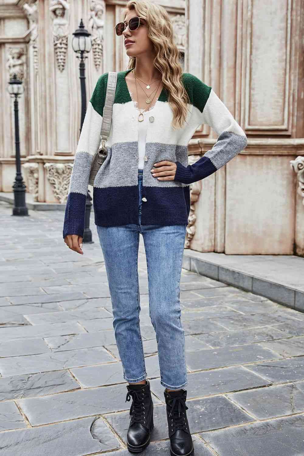 Color Block V-Neck Button Down Cardigan