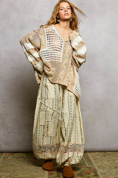 Color-Blocked Stripe Pattern Knit Top with Twisted Weave
