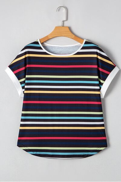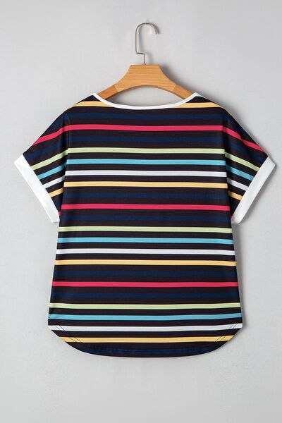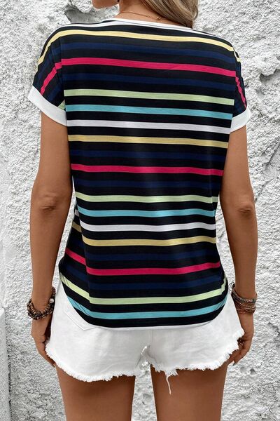 Colorful Striped Short Sleeve Casual T-Shirt