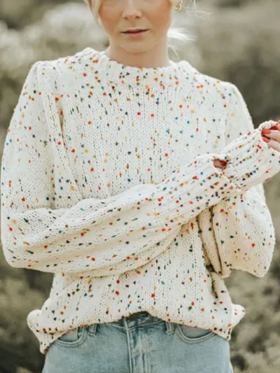 Confetti Round Neck Long Sleeve Sweater
