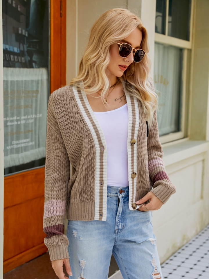 Contrast Button Up Dropped Shoulder Cardigan