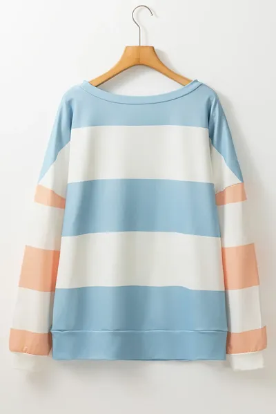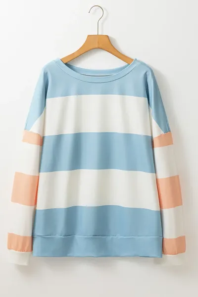 Contrast Color Block Round Neck Long Sleeve Top