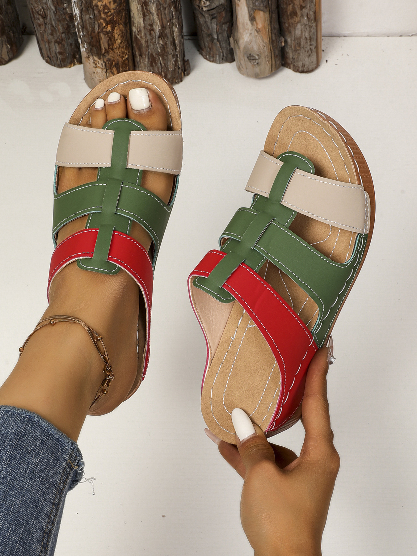 Contrast Cutout Open Toe Sandals