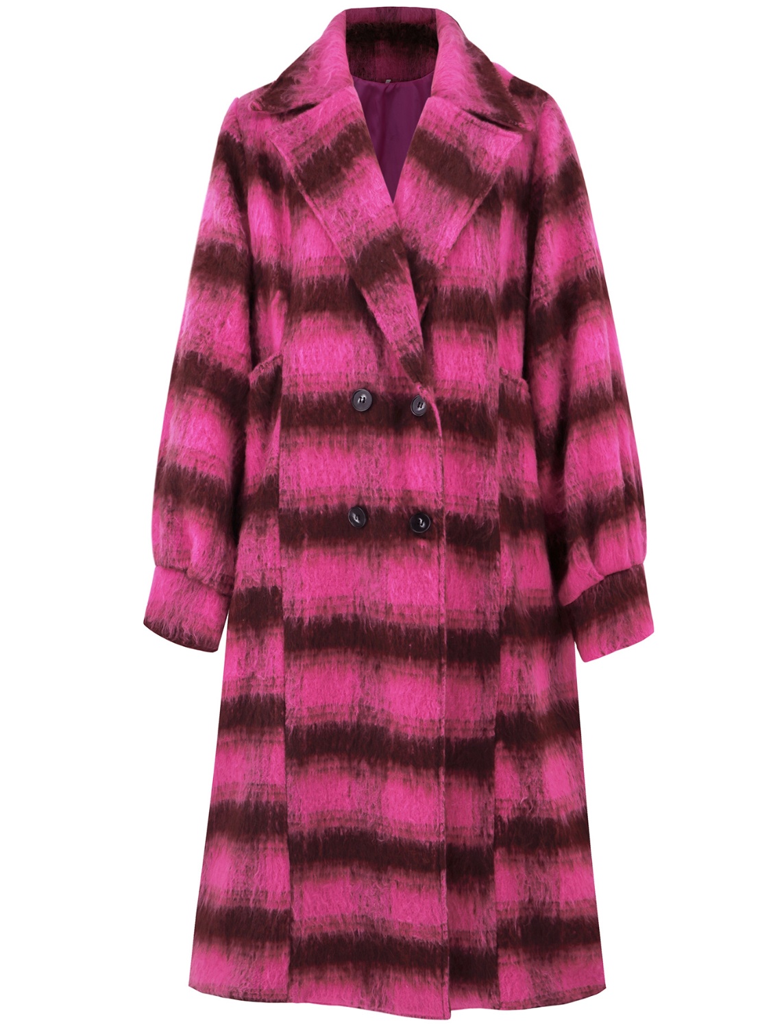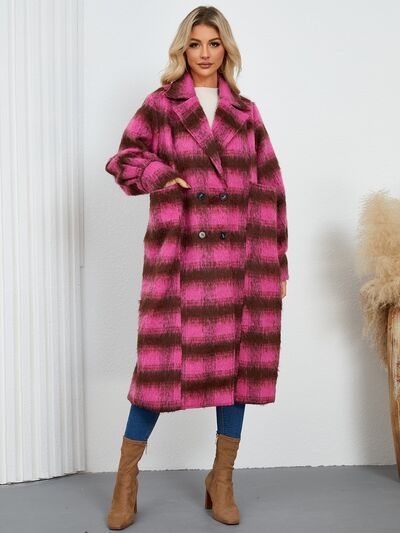 Contrast Double-Breasted Long Sleeve Longline Coat