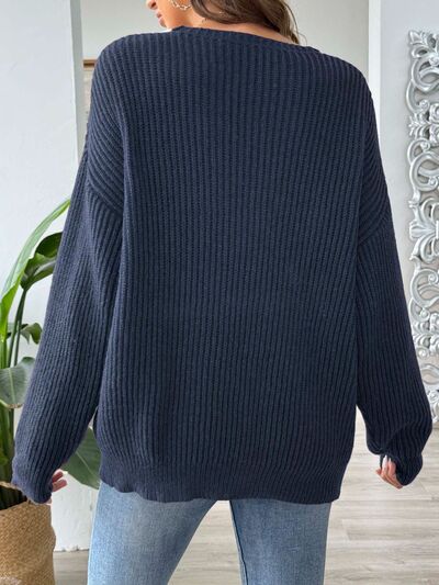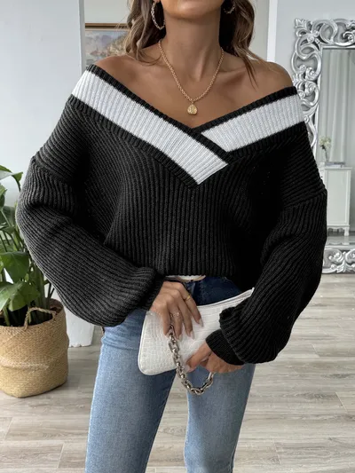 Contrast Dropped Shoulder Long Sleeve Sweater