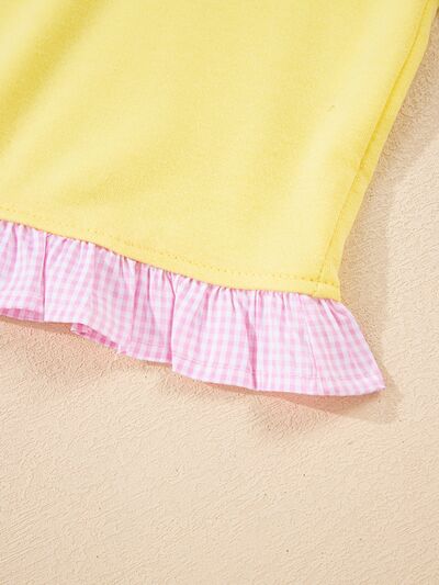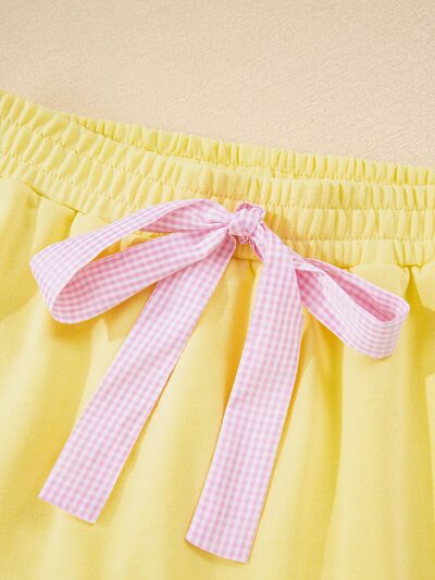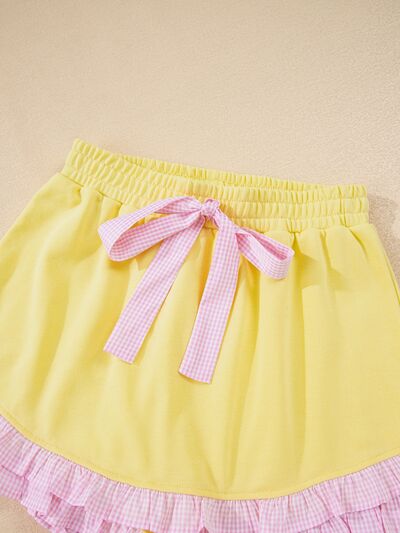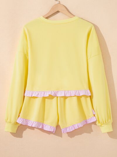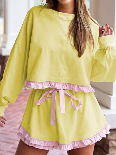 Contrast Frill Hem Round Neck Top and Shorts Set
