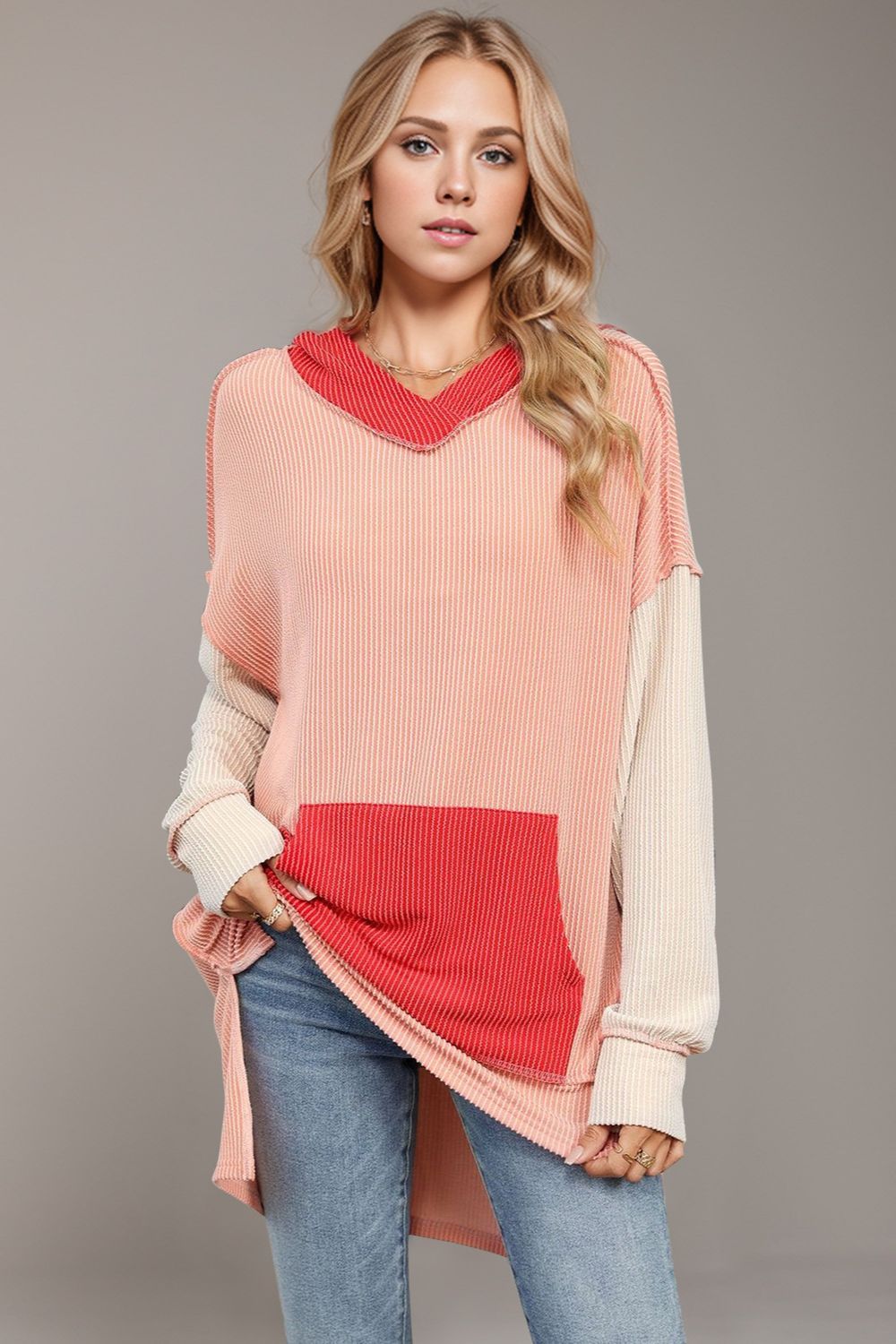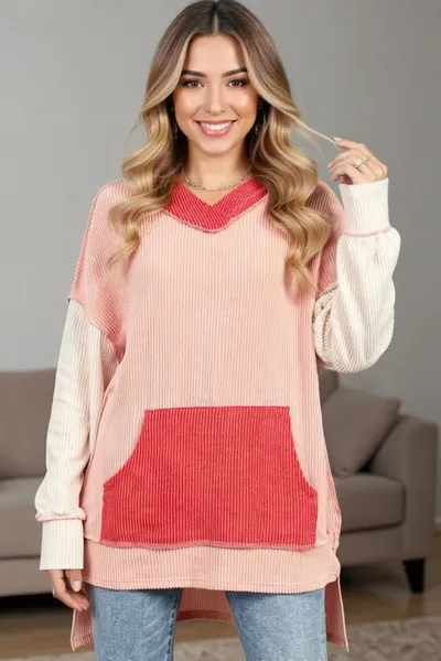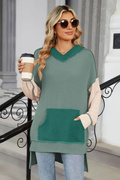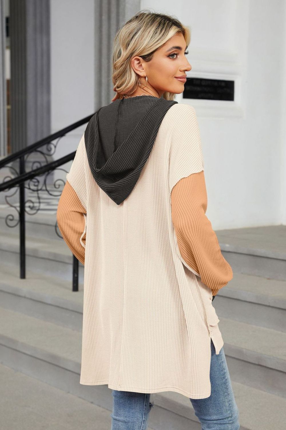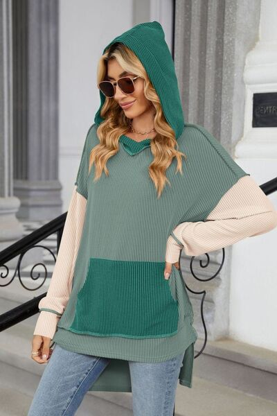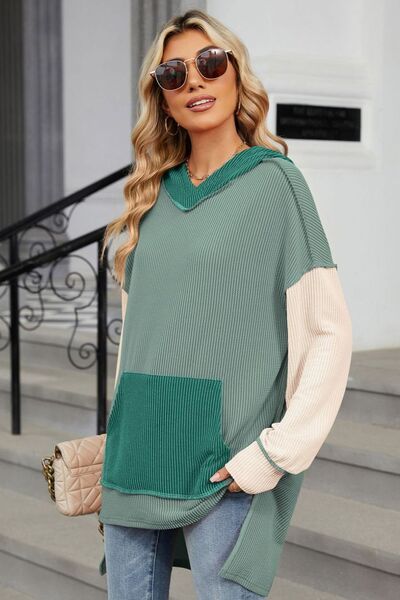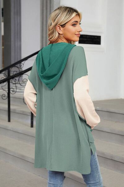 Contrast Hooded Long Sleeve Top