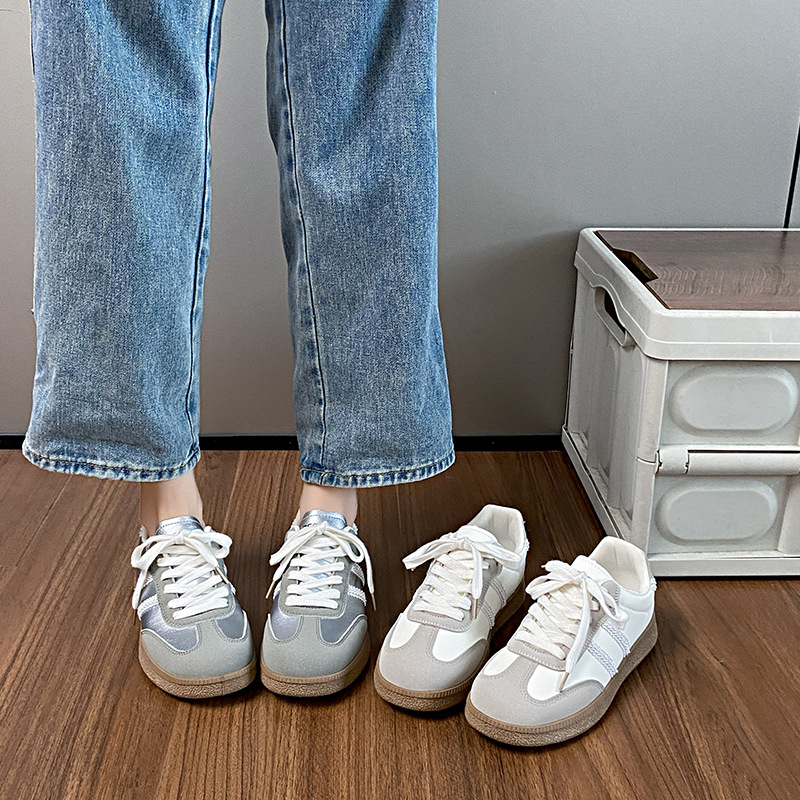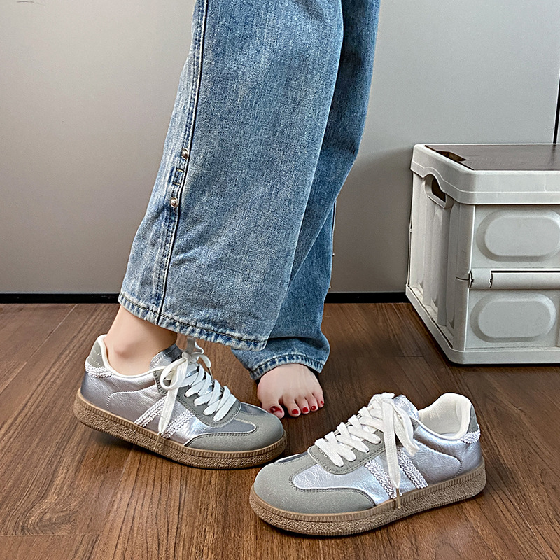 Contrast Lace Up Round Toe Sneakers