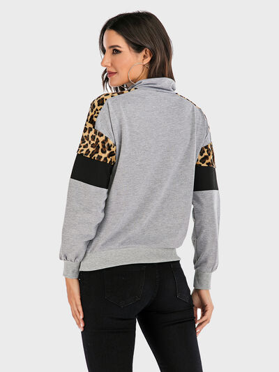 Contrast Leopard Half Zip Long Sleeve Sweatshirt