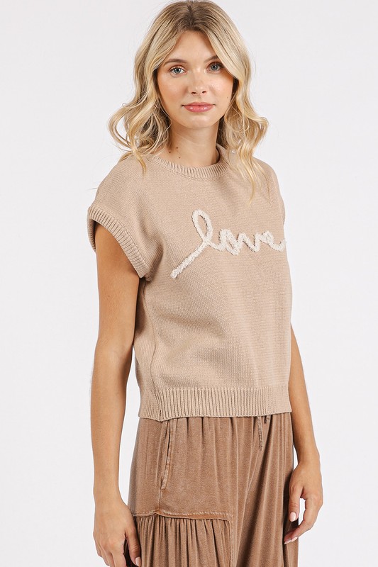 Contrast Letter Round Neck Cap Sleeve Knit Top