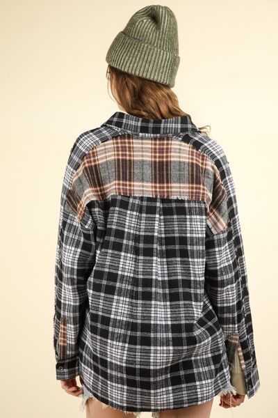 Contrast Plaid Raw Detail Shirt