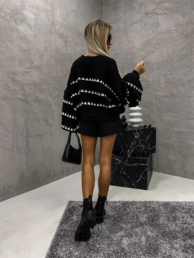 Contrast Round Neck Long Sleeve Sweater