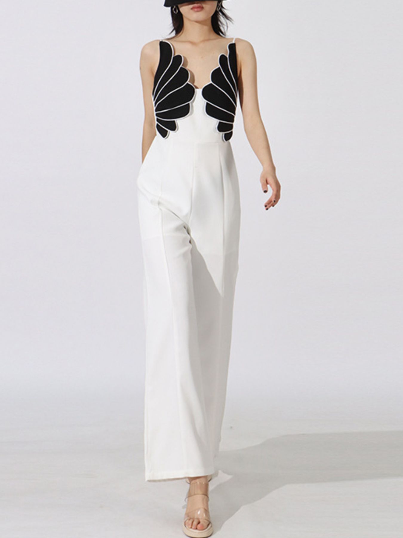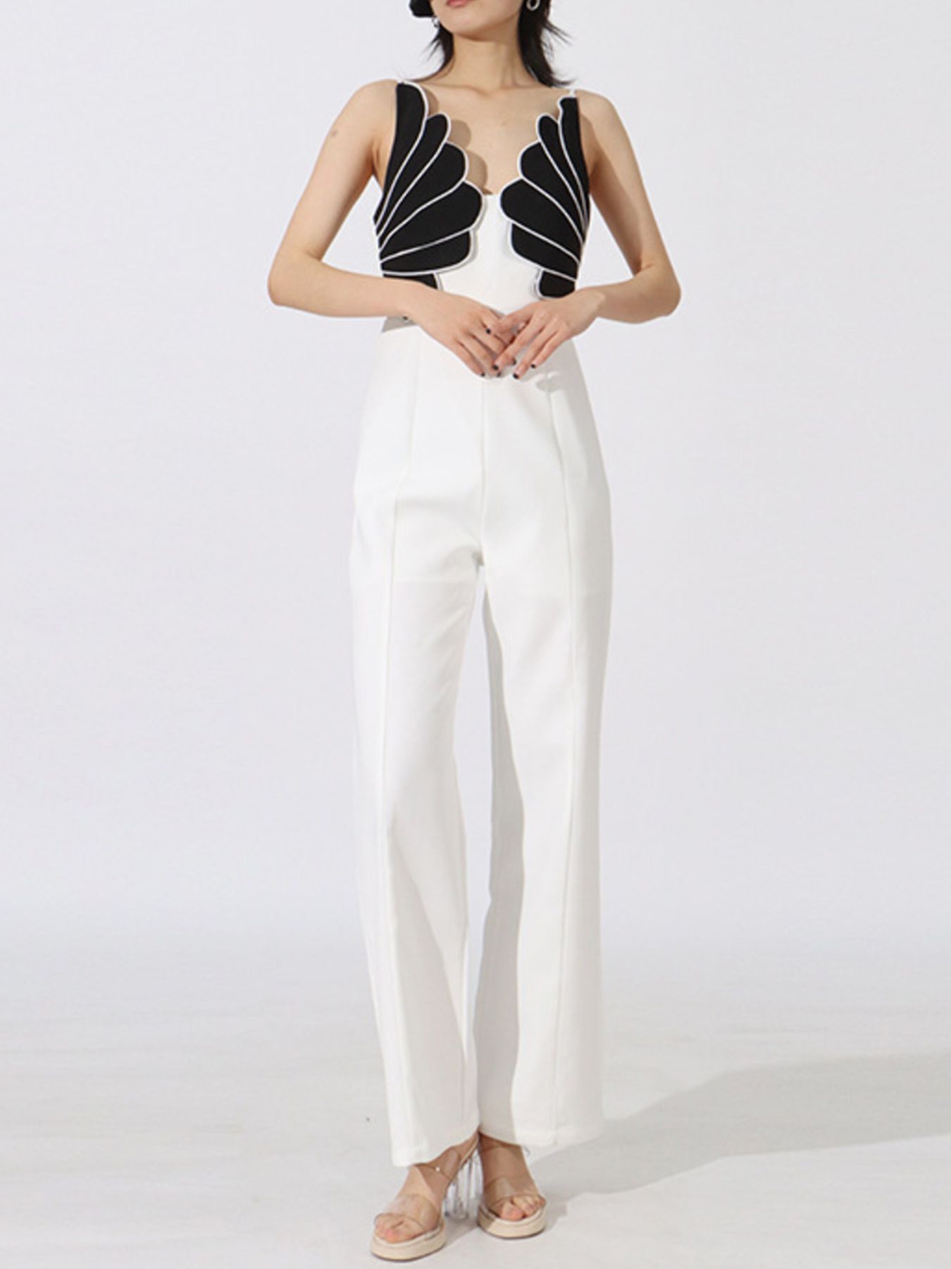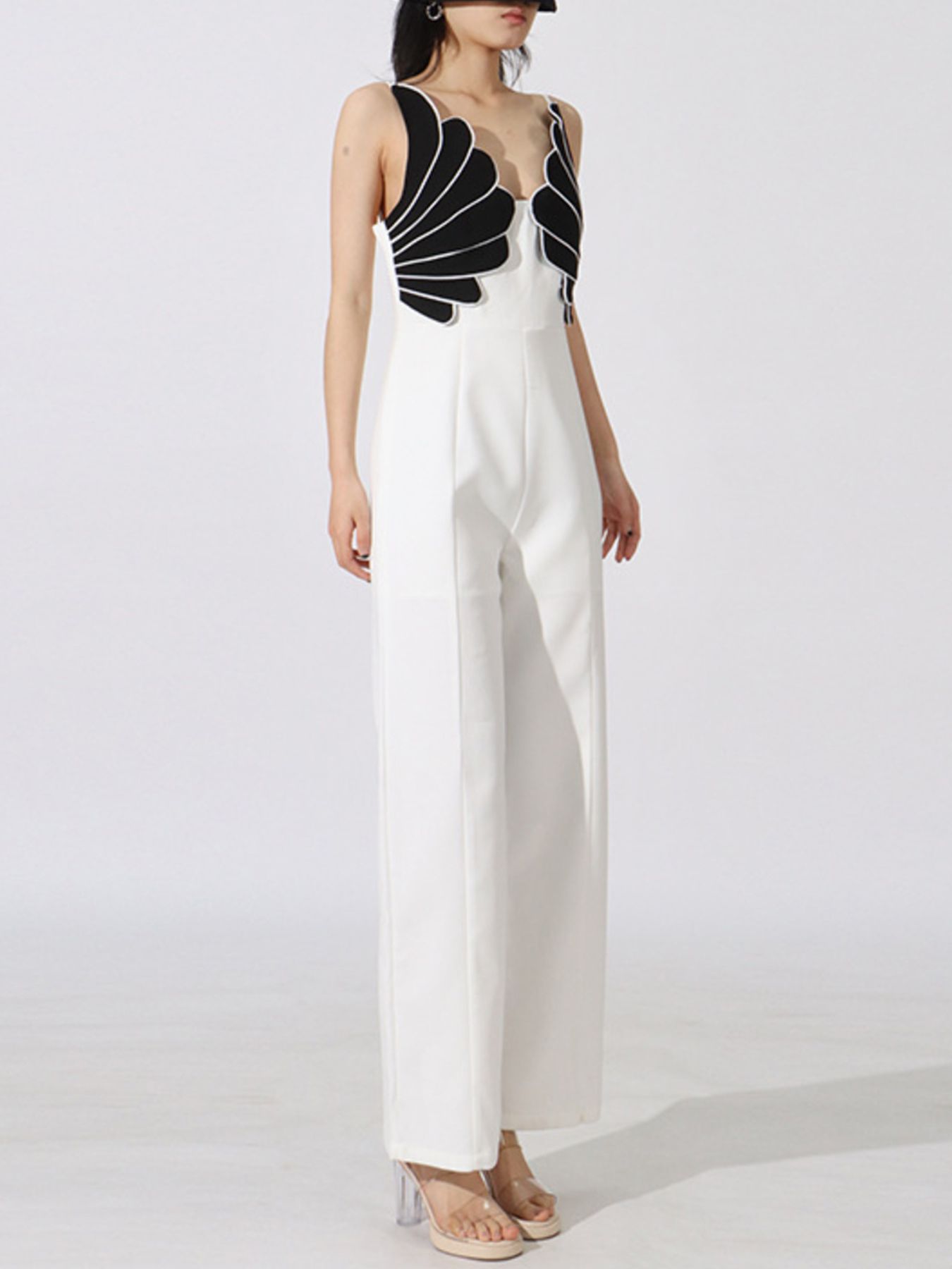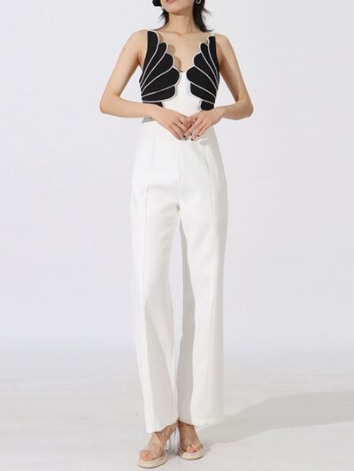 Contrast Sleeveless Wide-Leg Jumpsuit