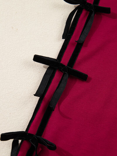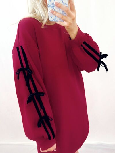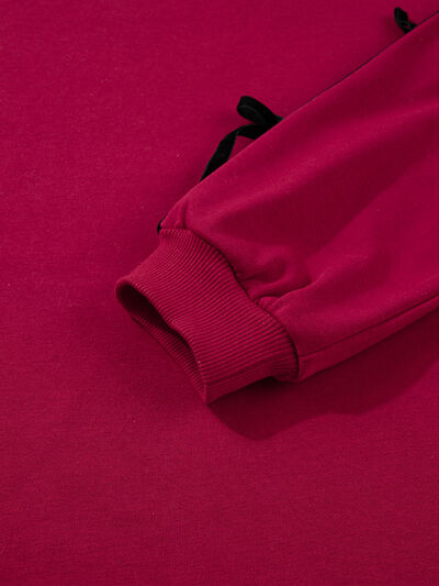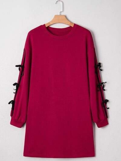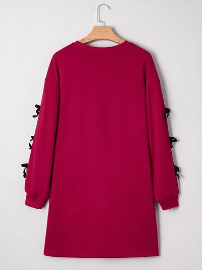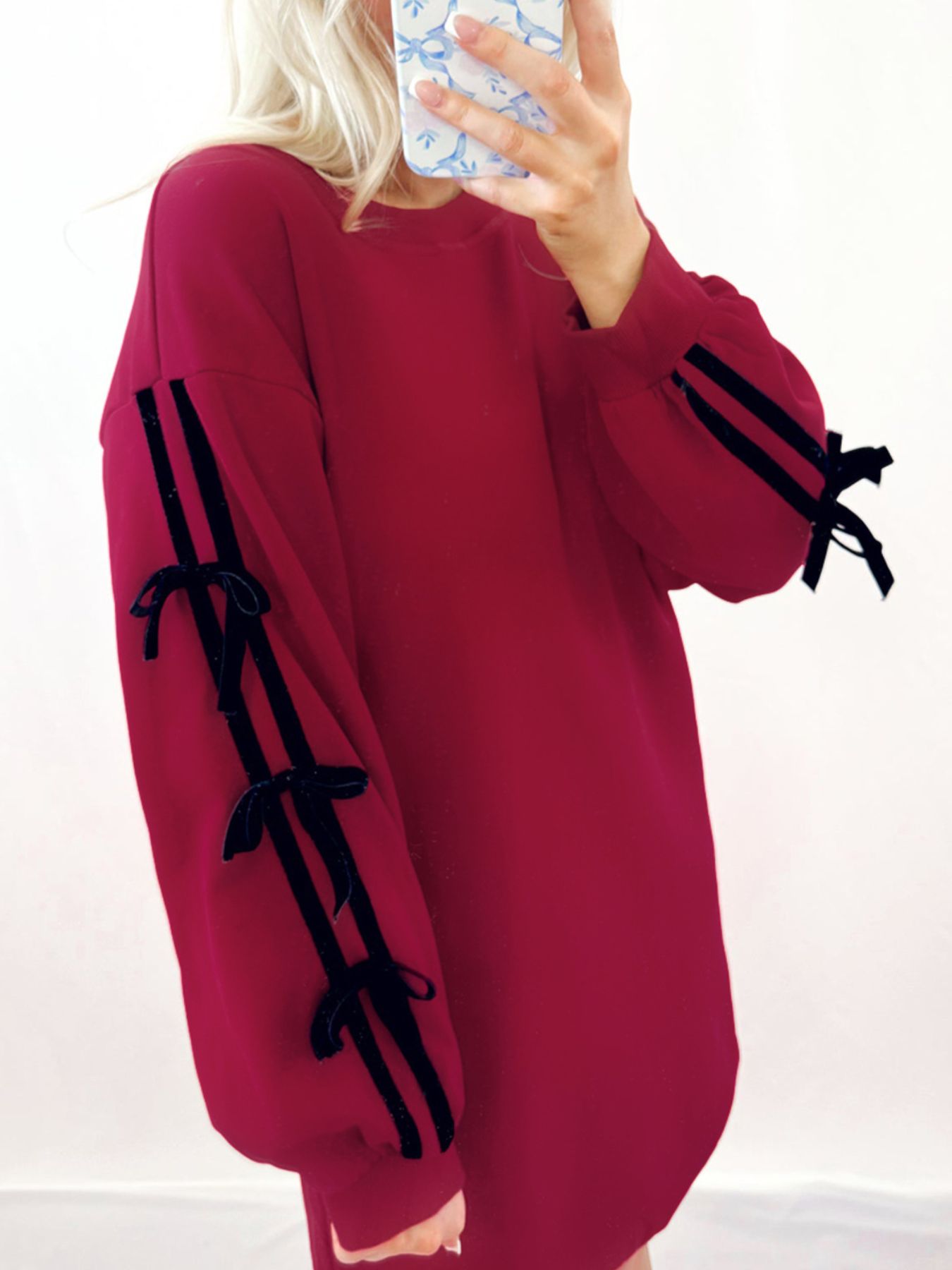 Contrast Striped Bow Detail Drop Shoulder Sweatshirt Dress with Pockets