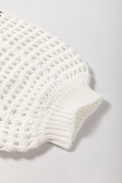 Contrast Striped Crochet Long Sleeve Knit Cover Up